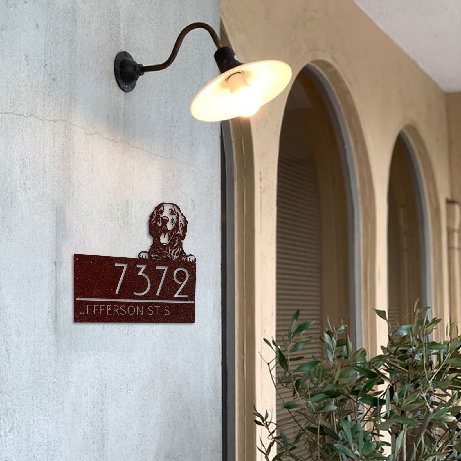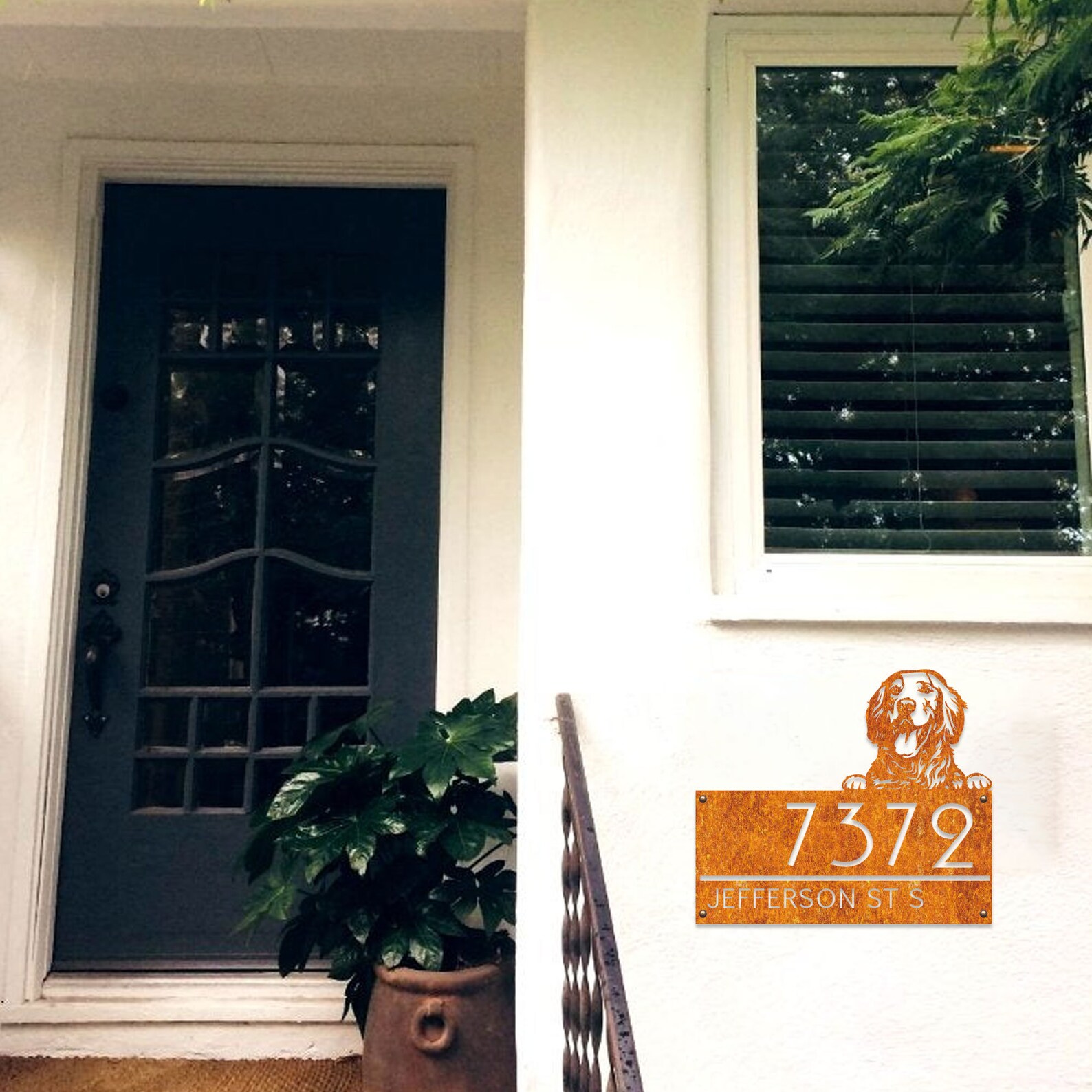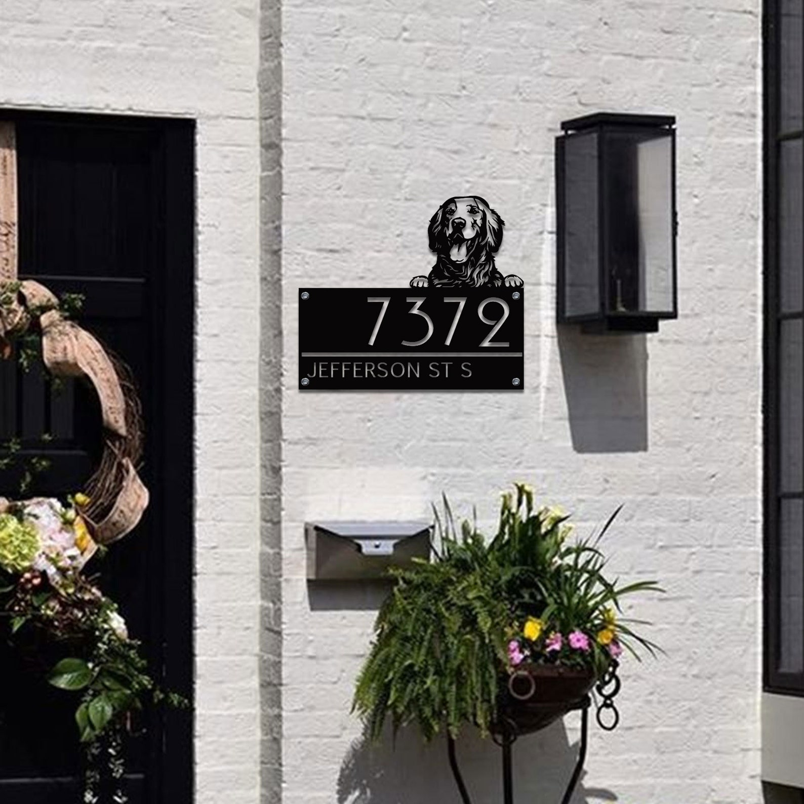 Custom Golden Retriever Metal House Number Sign, Horizontal Metal Address Sign, Dog Address Sign, Outdoor Number Plate, Housewarming Gift.