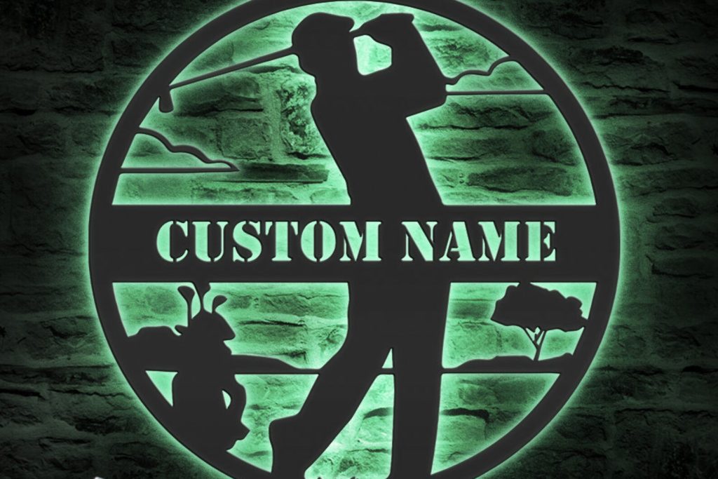 Golfing Sign, LED Light, Golfer Name Sign, Man Cave Decor