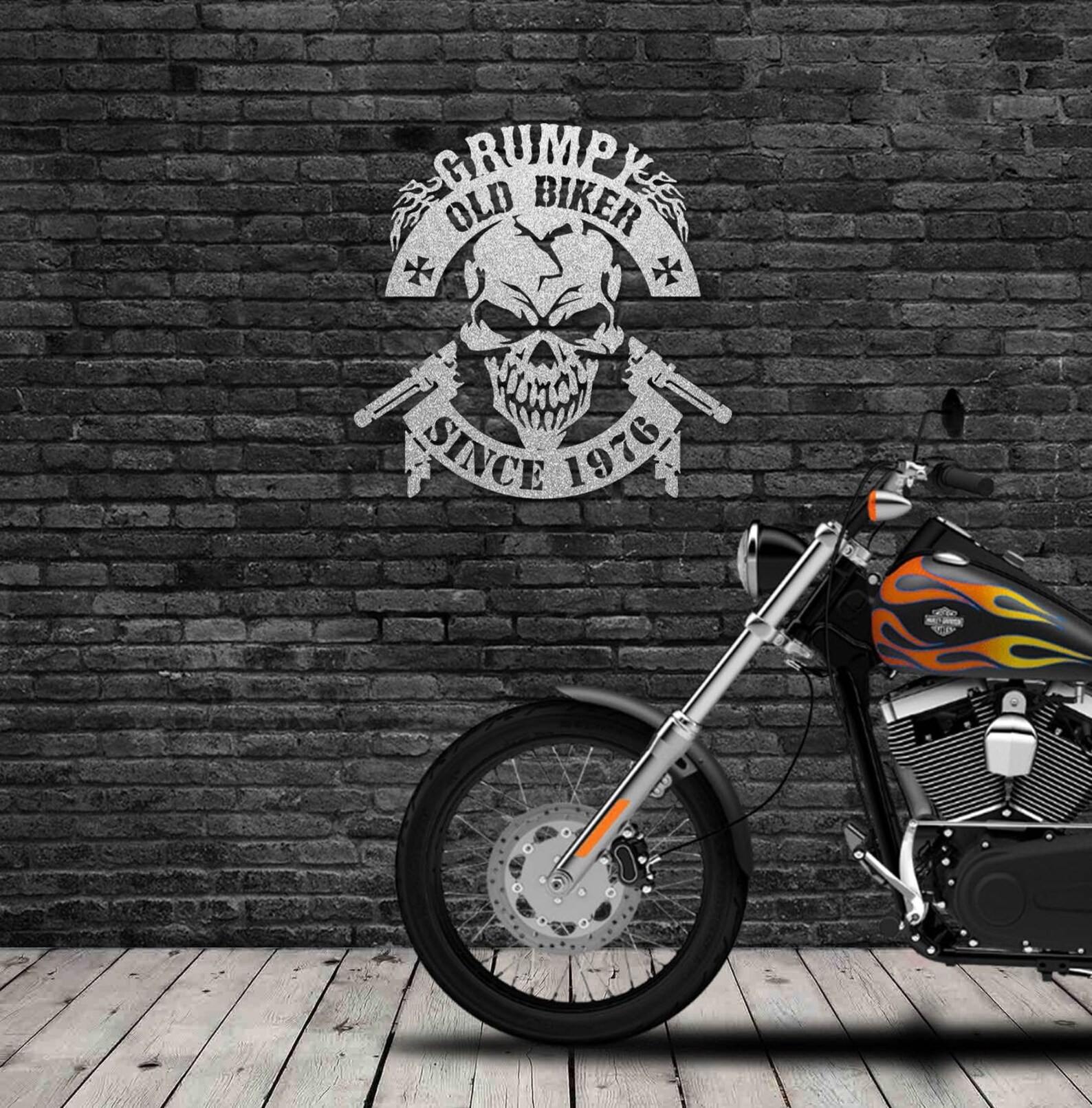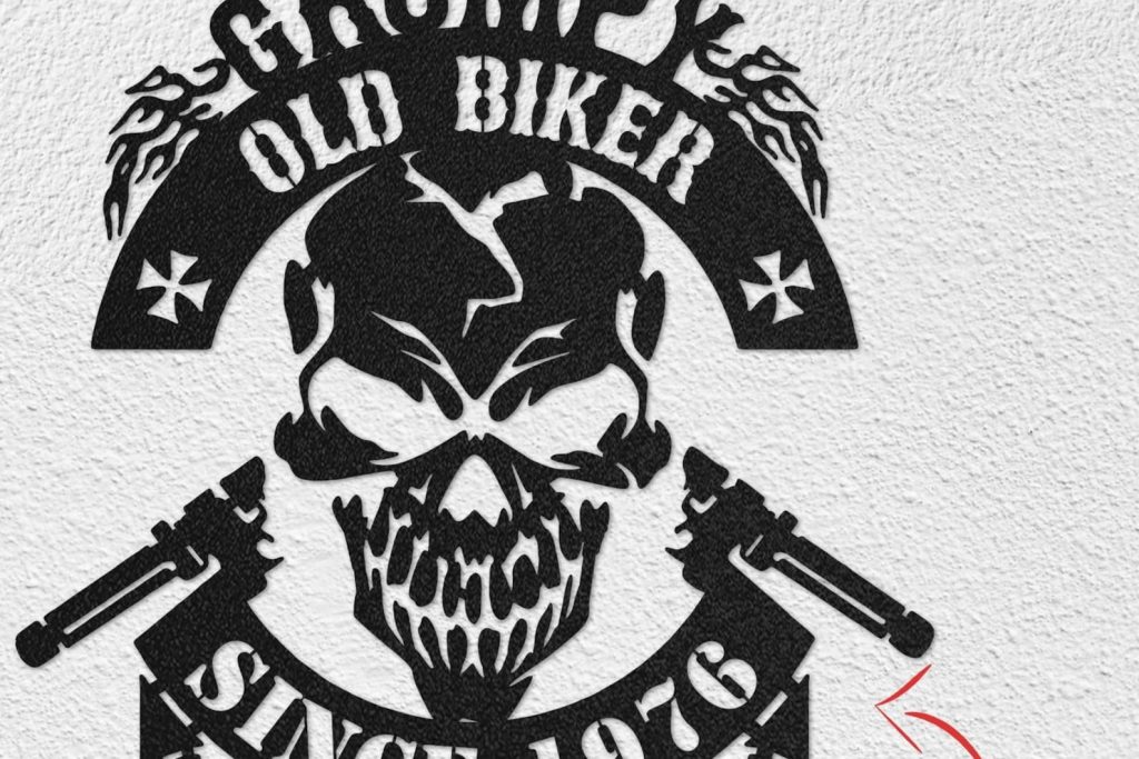 Personalized Biker Gifts – Grumpy Old Biker – Metal Wall Art Sign – Motorbike Rider Gifts – Garage / Den / Games Room / Birth Year
