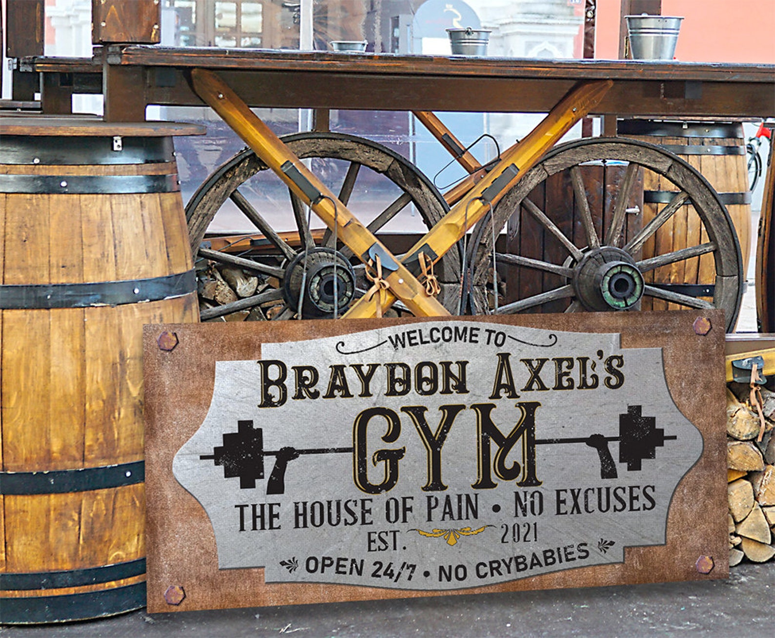 Be the first to review “Gym Canvas Sign – Personalized Large Wood Frame Wall Gift”
