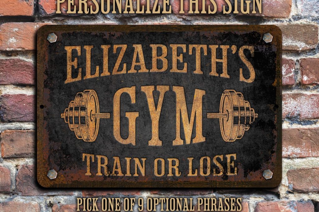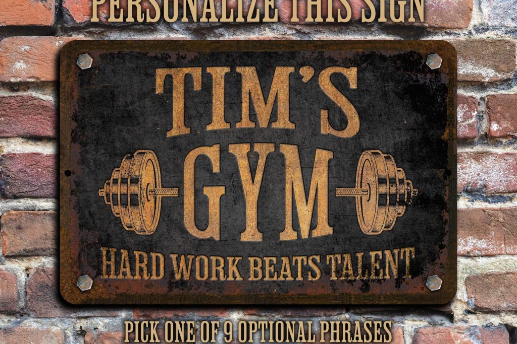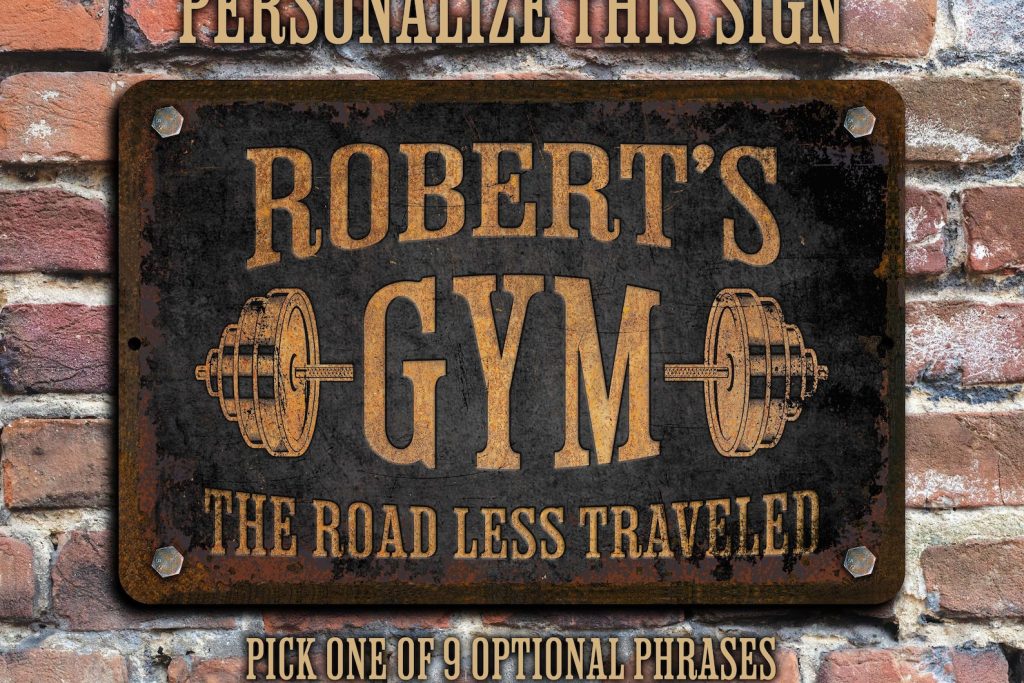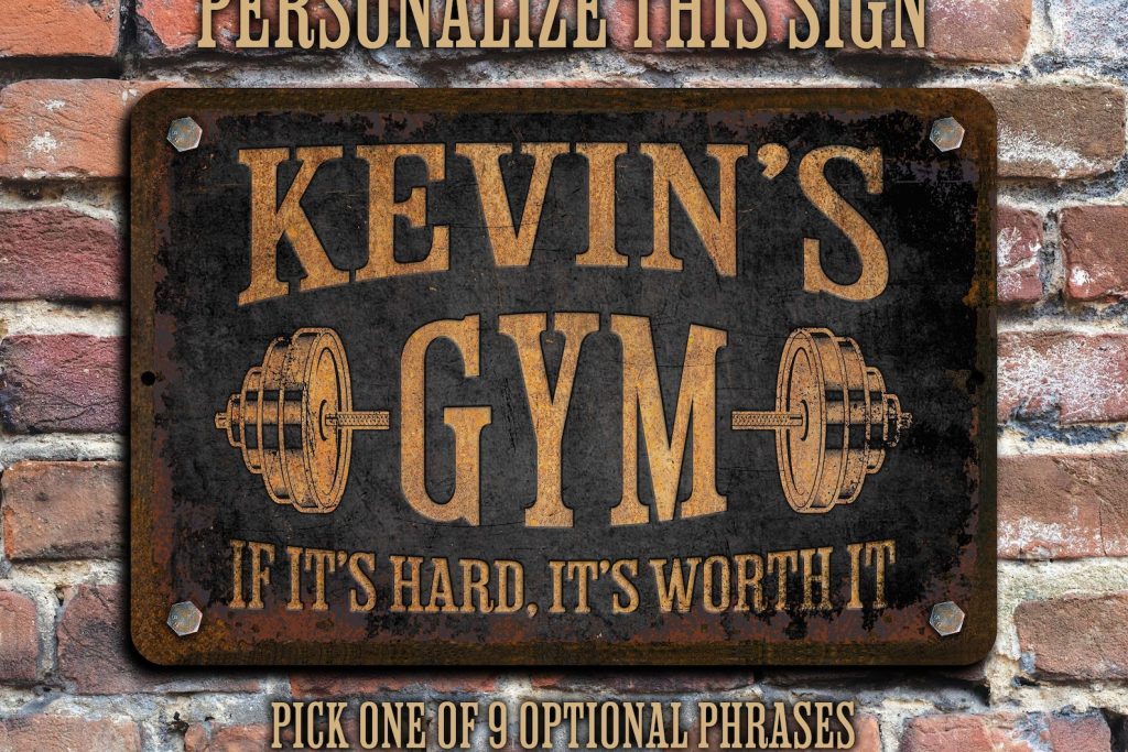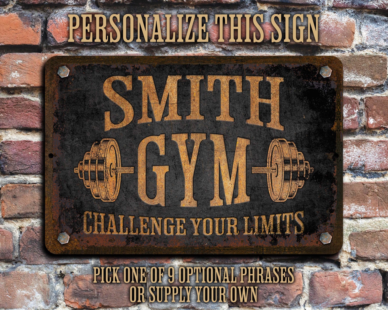 Personalized Home Gym or fitness Center Aluminum Sign | Great Gift Weight Trainers or Athletes | Customize this sign with your first name or last name. Designed with a rugged aged rusty look. Great gift for your workout warrior.