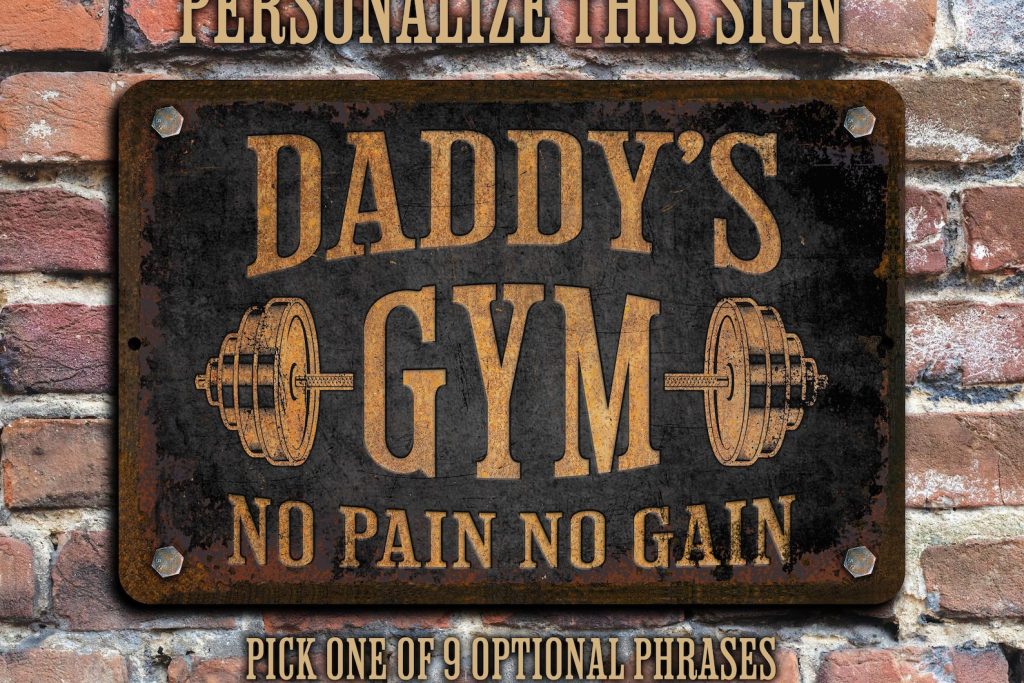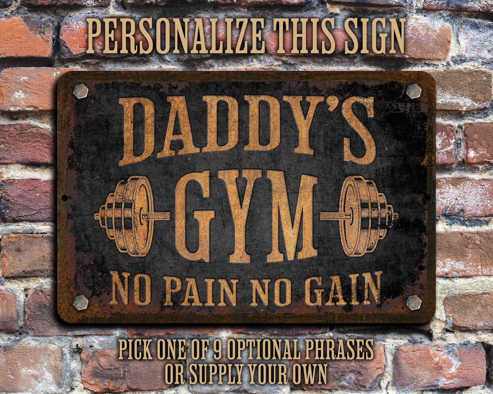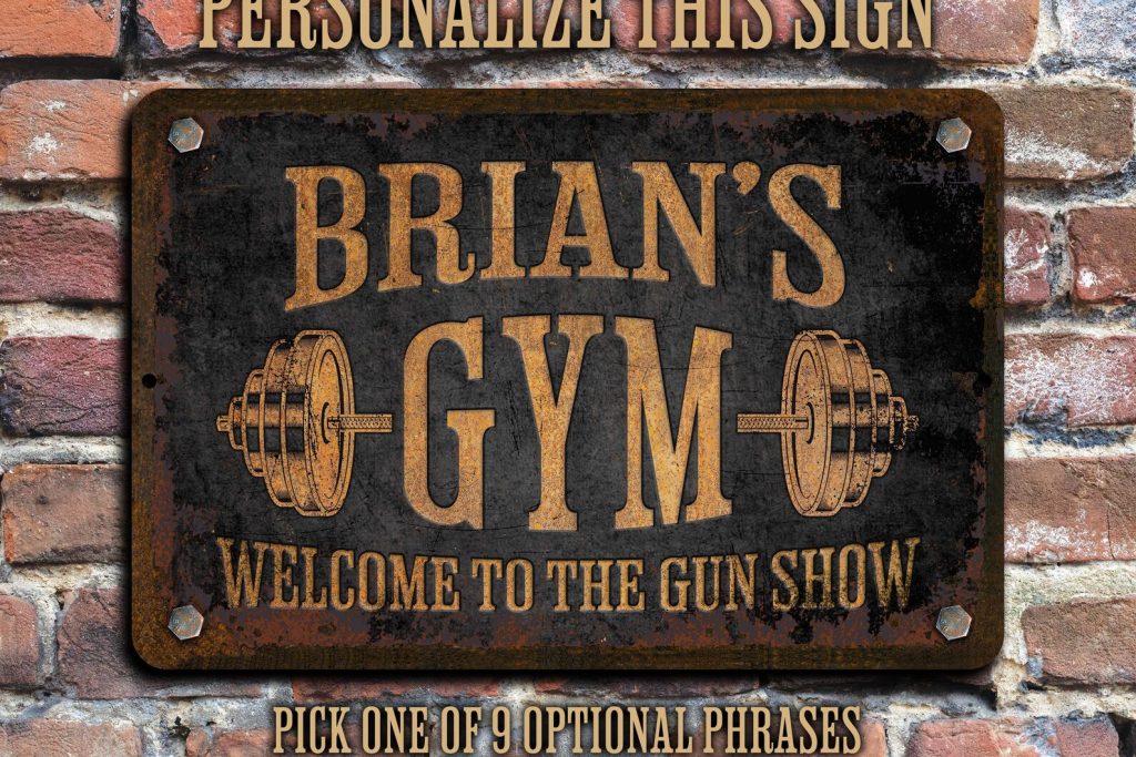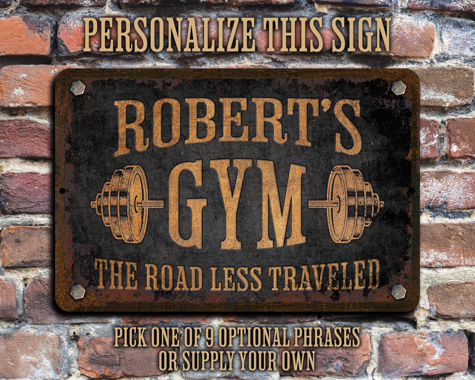 Personalized Home Gym or fitness Center Aluminum Sign | Great Gift Weight Trainers or Athletes | Customize this sign with your first name or last name. Designed with a rugged aged rusty look. Great gift for your workout warrior.