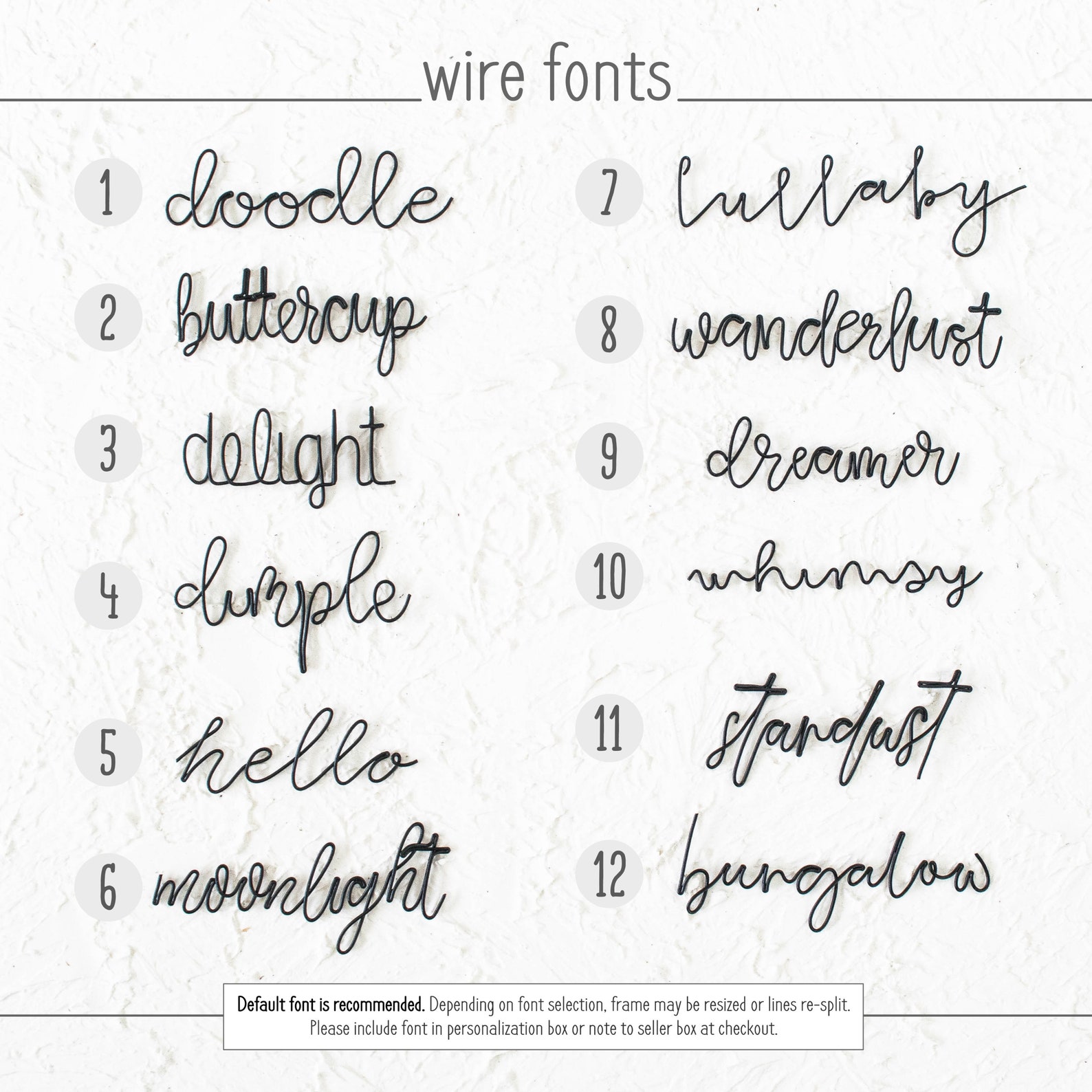 + font preference: include in personalization box (default: pictured)