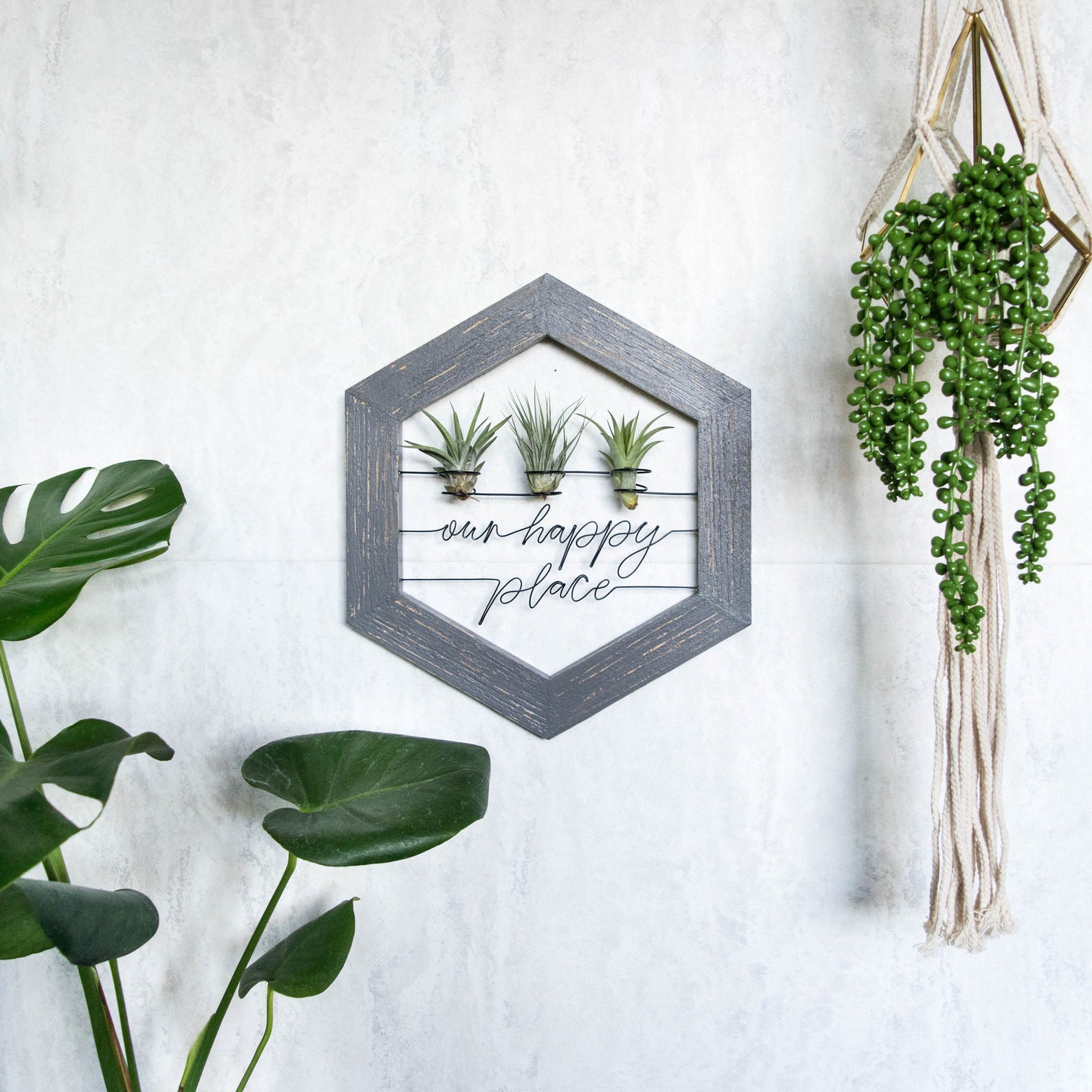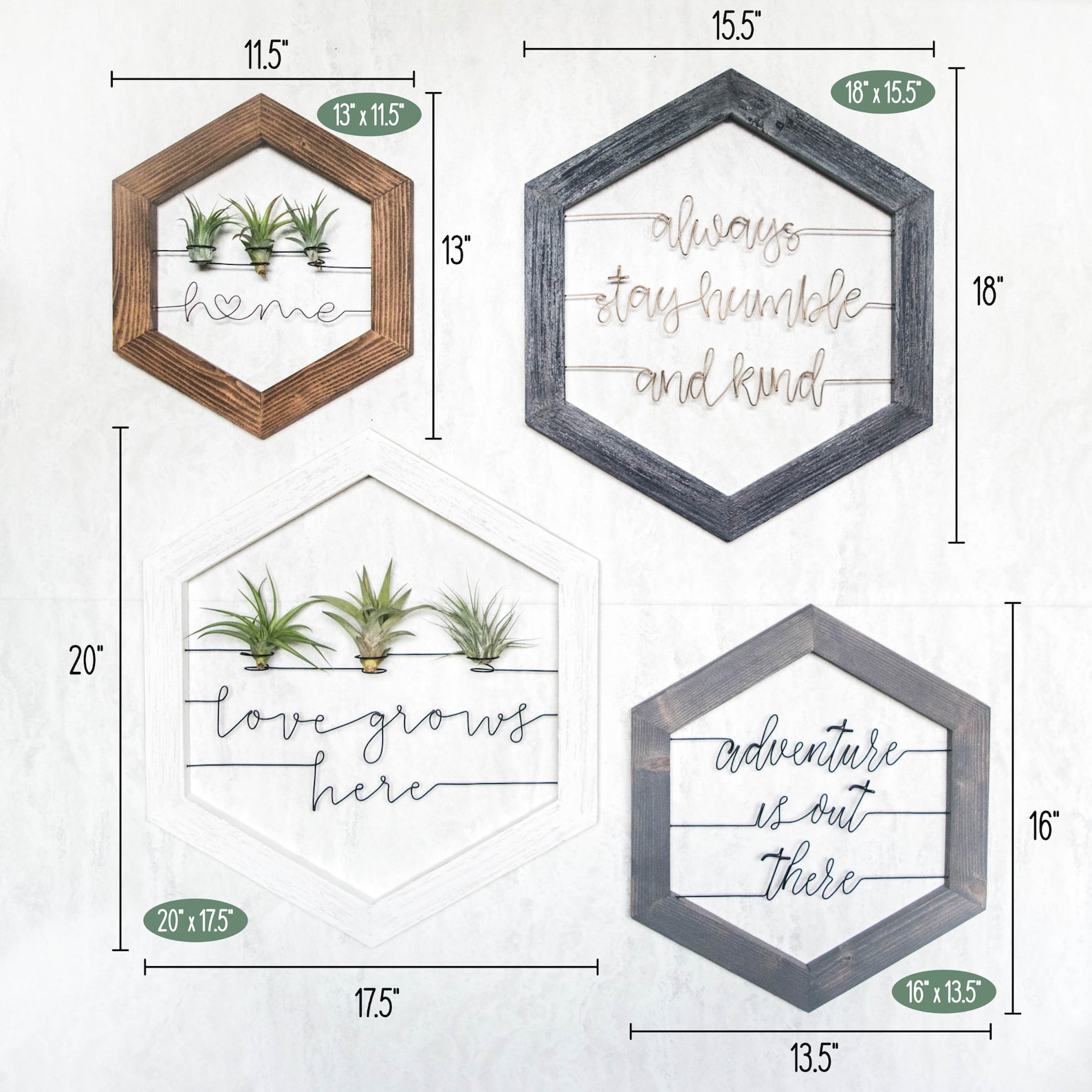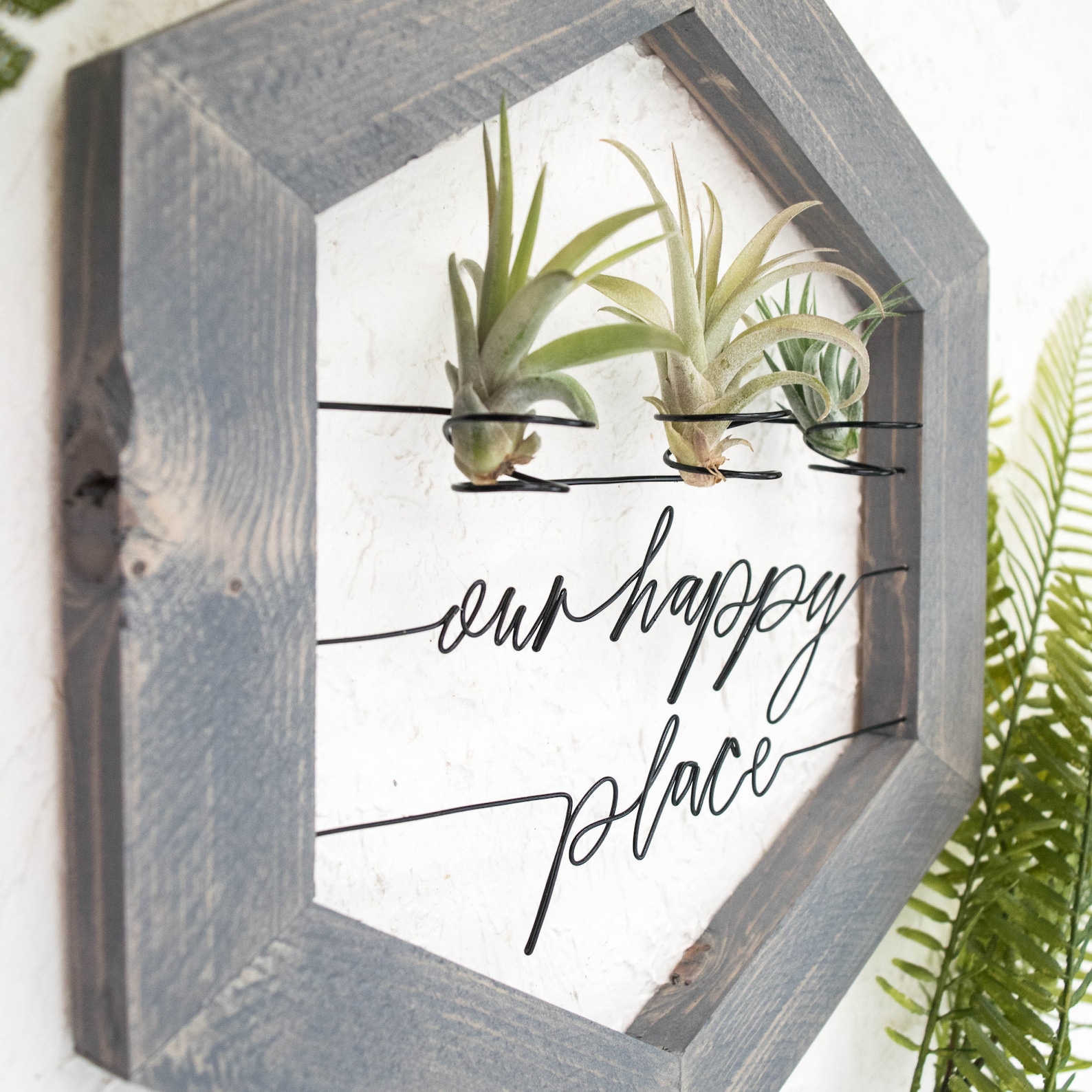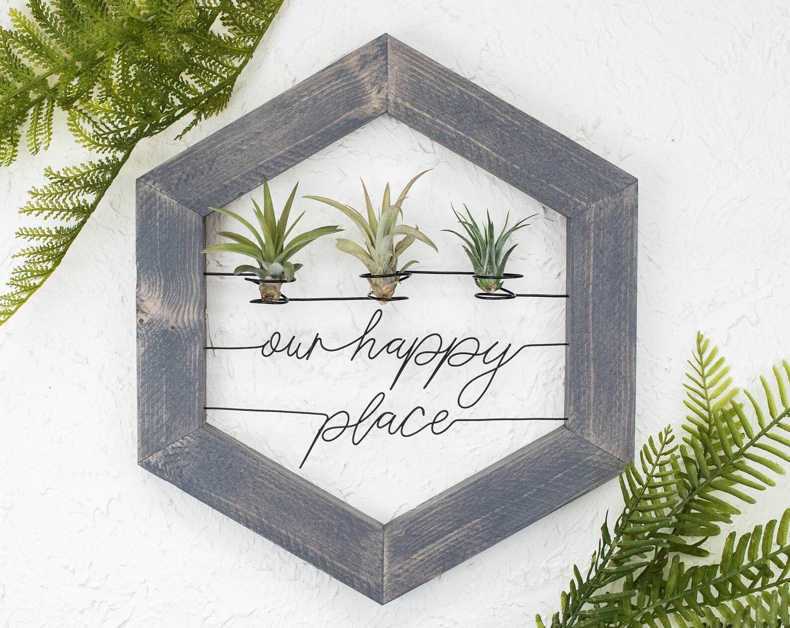 Whether you9;re on the hunt for the perfect housewarming gift or on the prowl for another unique addition to your stunning gallery wall, this refreshing air plant holder is not to be missed. Each quote is hand-shaped from galvanized steel wire and then framed with a rustic hand-painted wood frame. Its so unexpected, so curious, so inventive. Plus, it9;s infinitely customizable to suit your own taste. Whats not to love? 😉