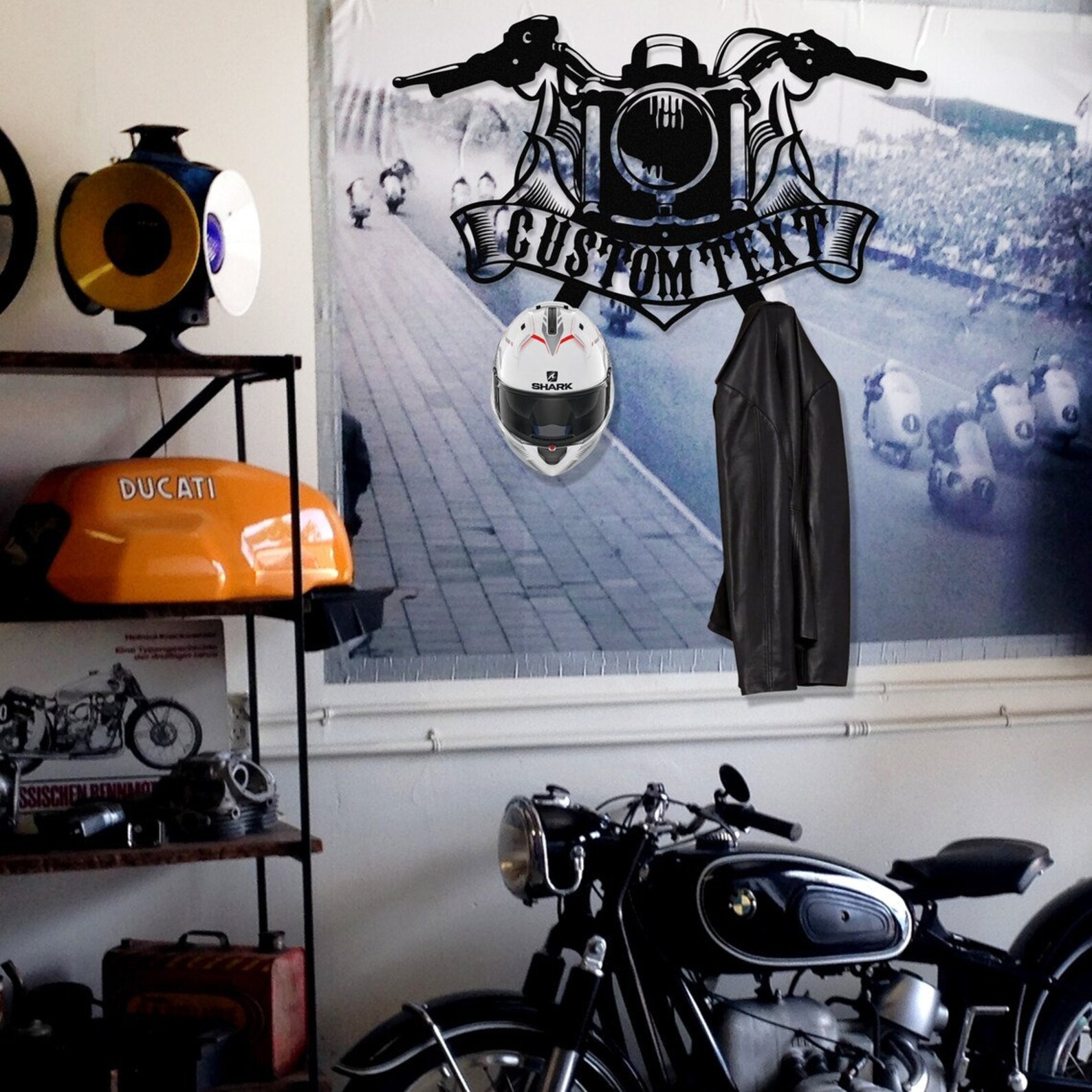 motorcycle helmet, motorcycle helmet holder, custom motorcycle helmet, harley davidson helmet holder, harley davidson, cafe racer, harley davidson helmet hanger, porte casque moto