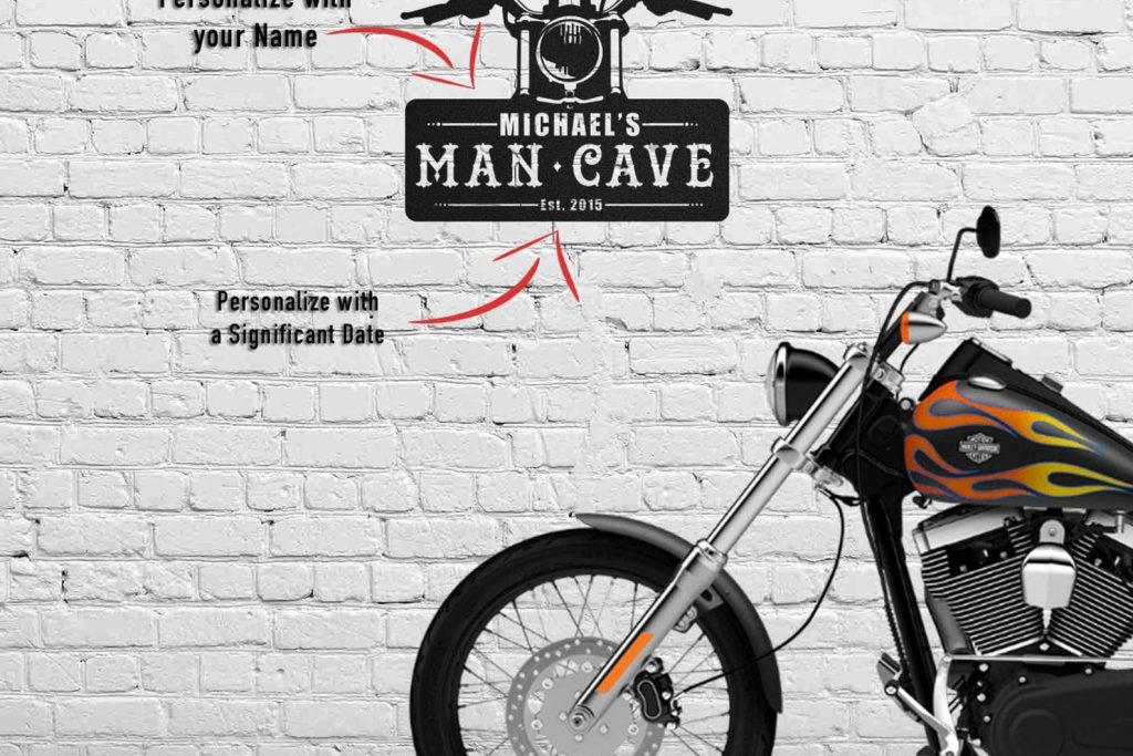 Harley Davidson Sign to be PERSONALIZED – Man Cave Metal Wall Art for Garage / Den / Games Room