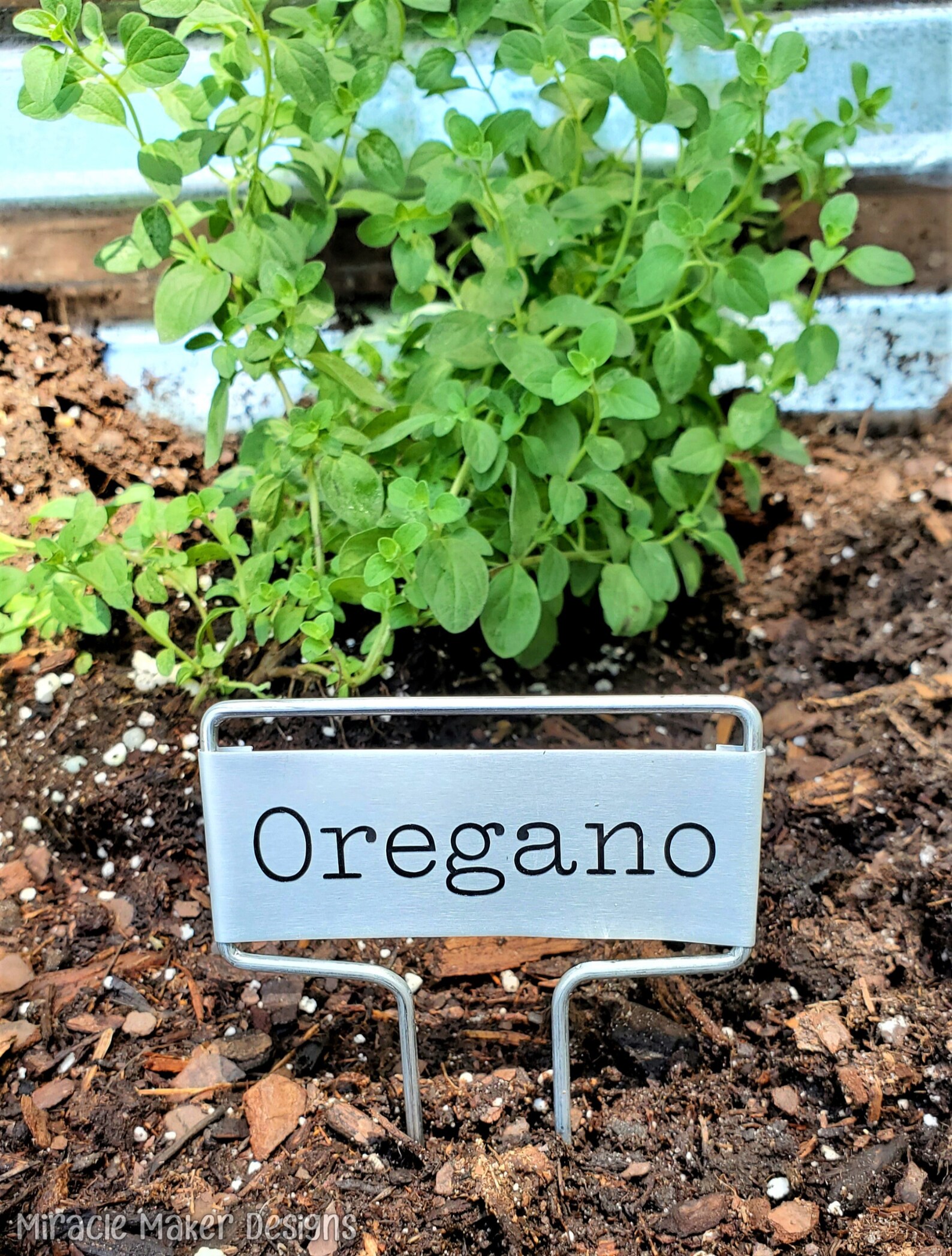 tThis listing is for the Customized Metal Garden Stakes labeled with your choice of plant in black lettering. It includes the marker only. Any accessories or props shown are not incl.