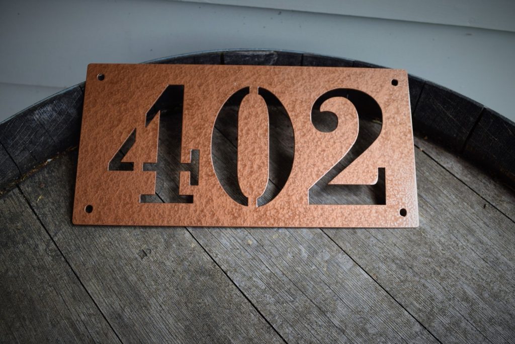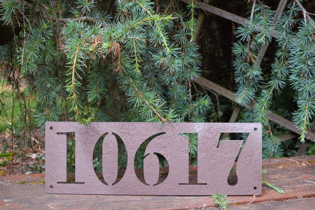This is a custom metal address sign. It has pre-cut holes for easy installation and made from steel. This product is personalized with your own house number and will make a great addition to any front porch or mailbox.