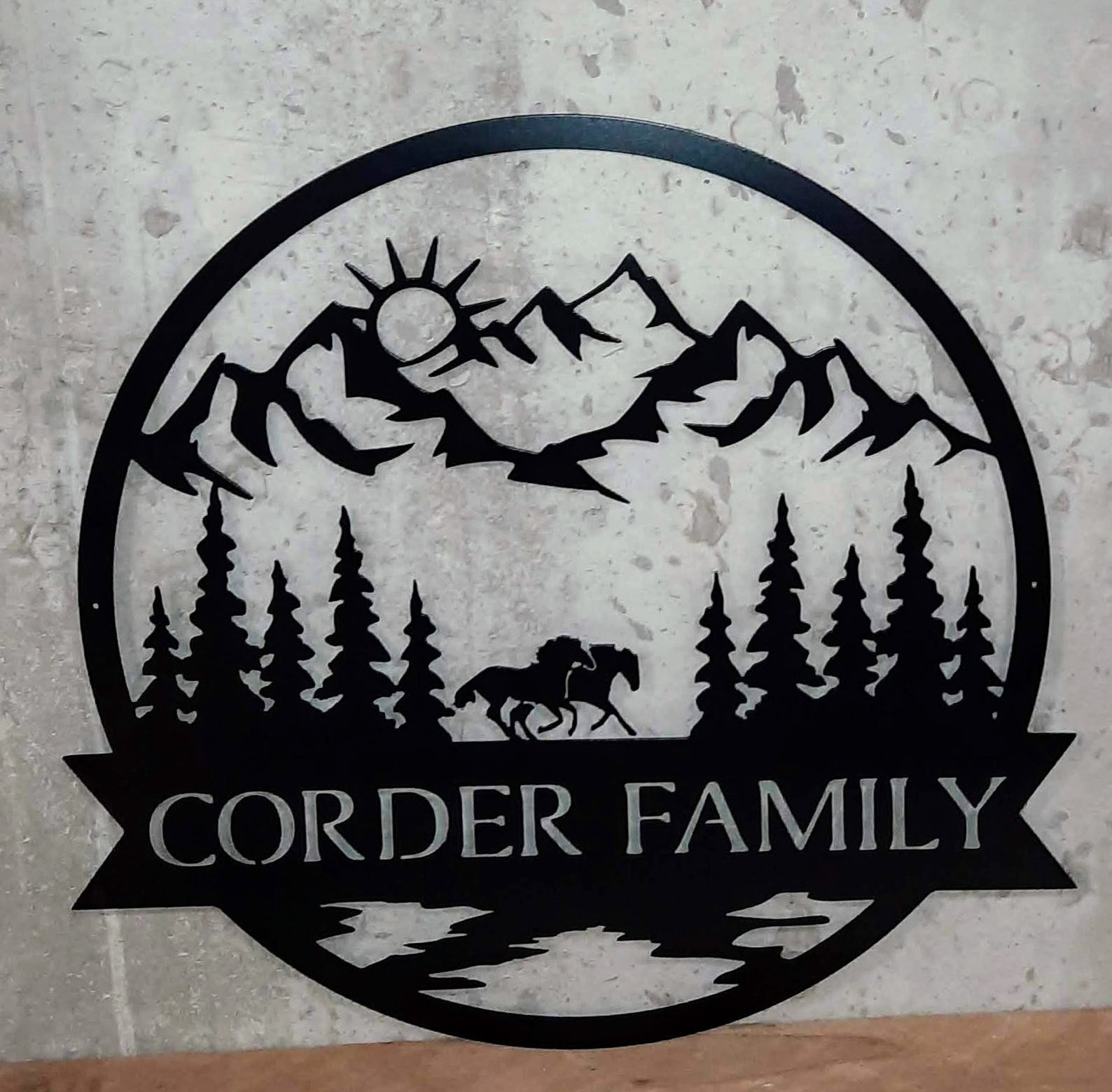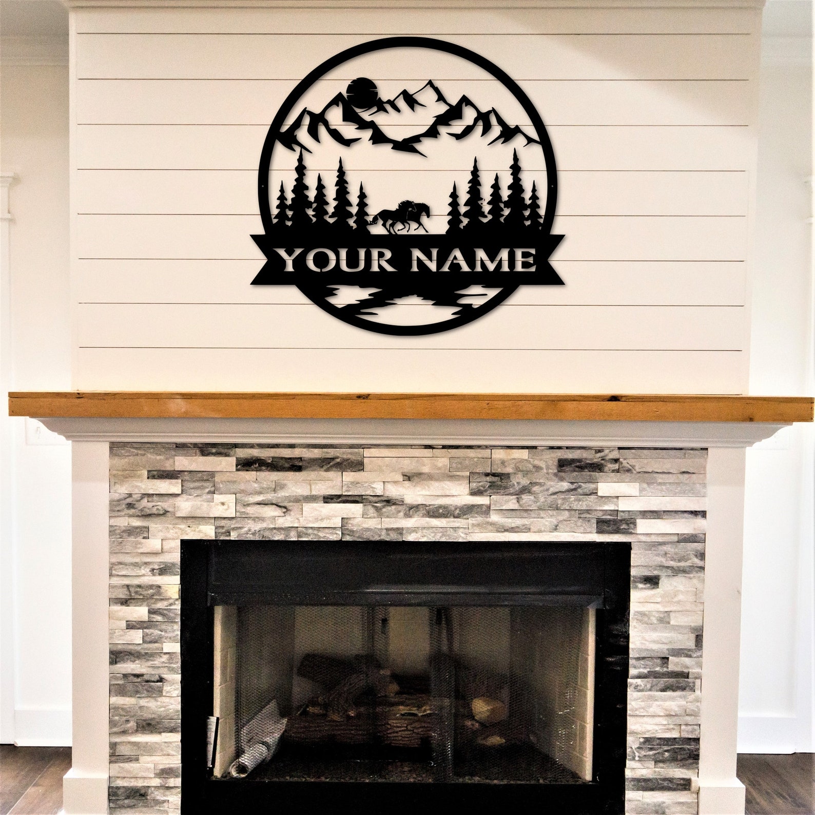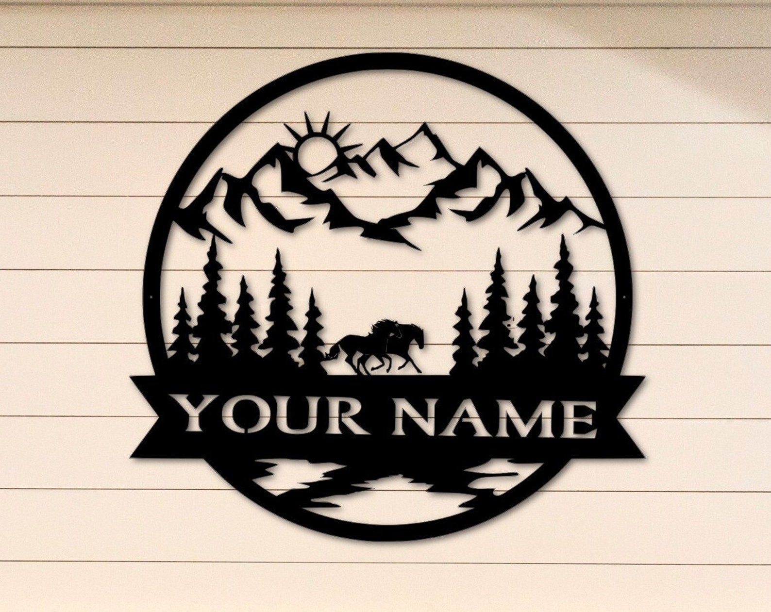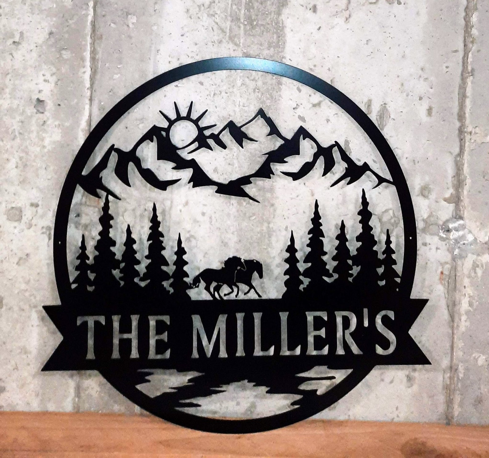 Personalize your home, cabin or barn with this custom last name sign with running horse scene. You can also choose between a moon or sun scene. These make unique Christmas gifts and great wedding or housewarming gifts!