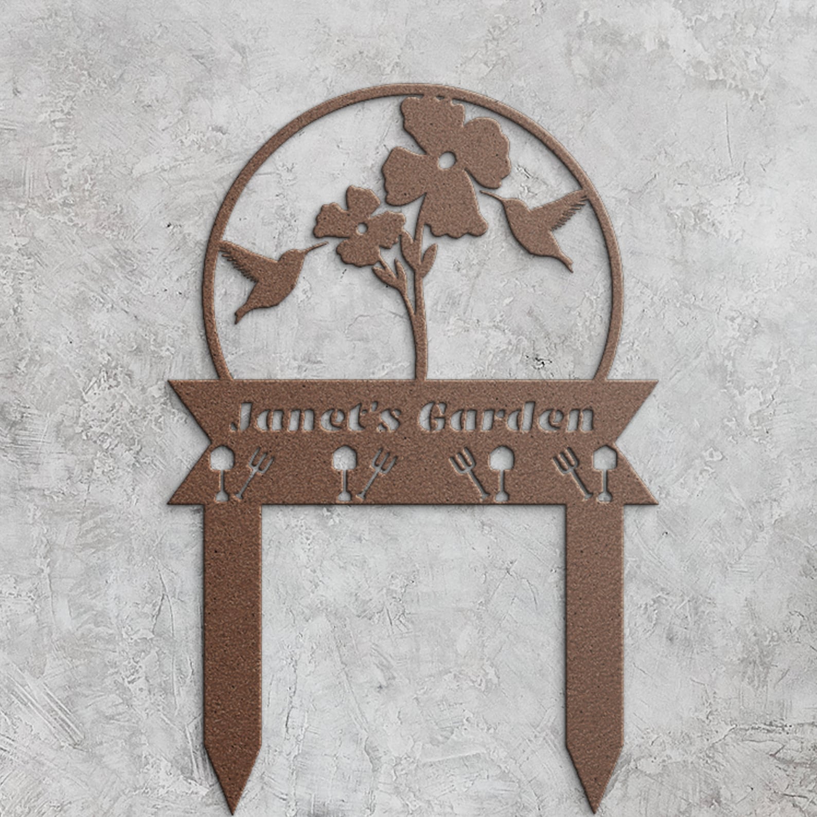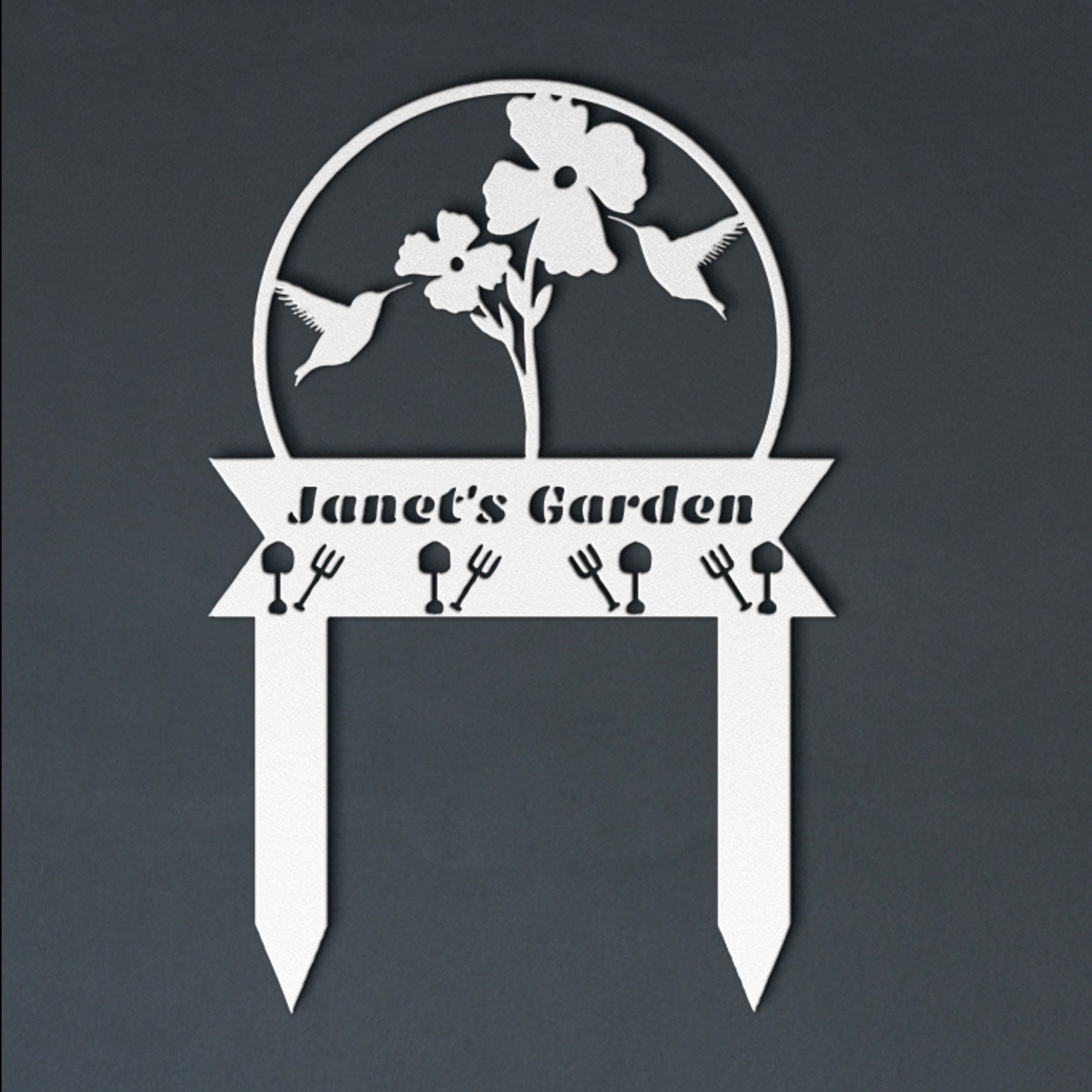 Add elegance to your garden with our intricate metal stake sign. Elevate your outdoor space and enjoy personalized artistry that enhances your garden9;s beauty. Our Metal Signs are ideal for indoor and outdoor applications and will last for years to come!