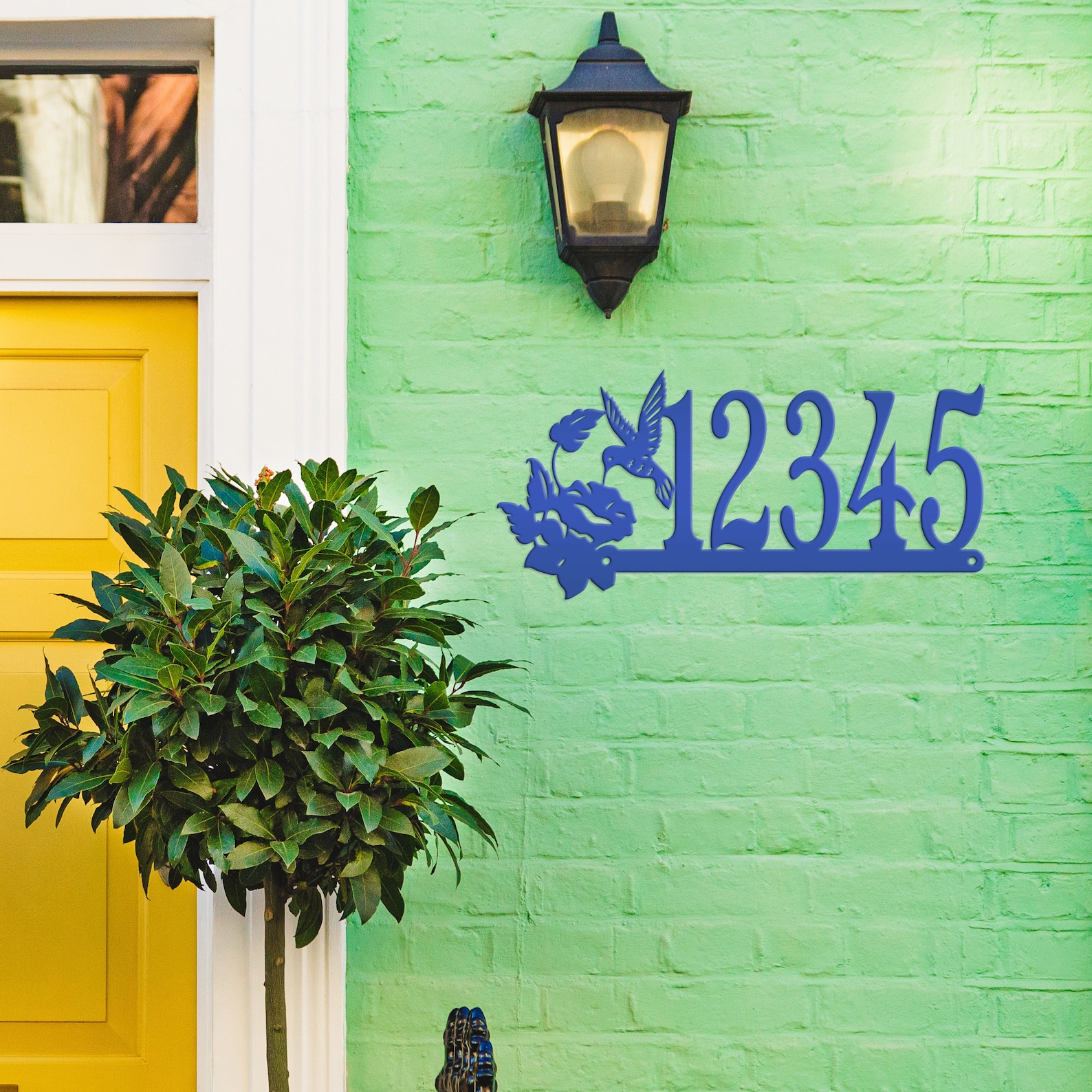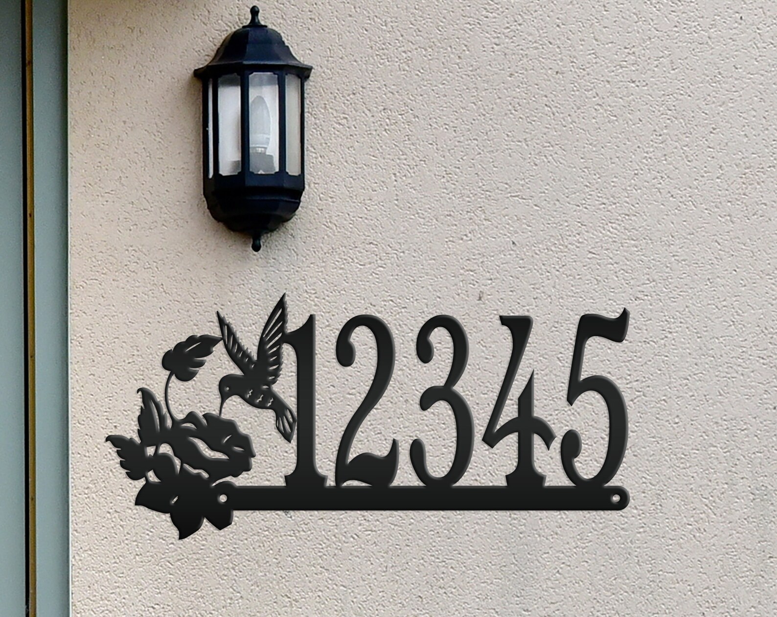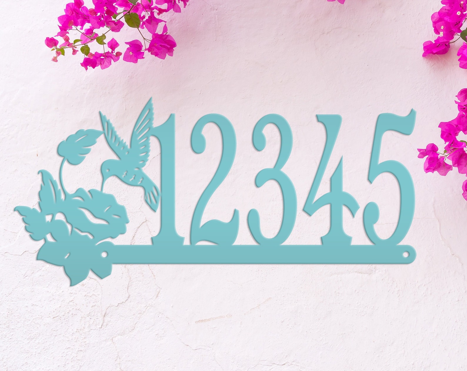 Add a touch of charm to your front porch with this beautiful Metal Address Sign. Perfect for the bird lover, this decorative outdoor decor features a graceful hummingbird design and customizable house numbers. Crafted to withstand the elements, this custom mailbox post signage will elevate the style of your home while showcasing your unique personality. Welcome guests in style with this delightful piece of art.