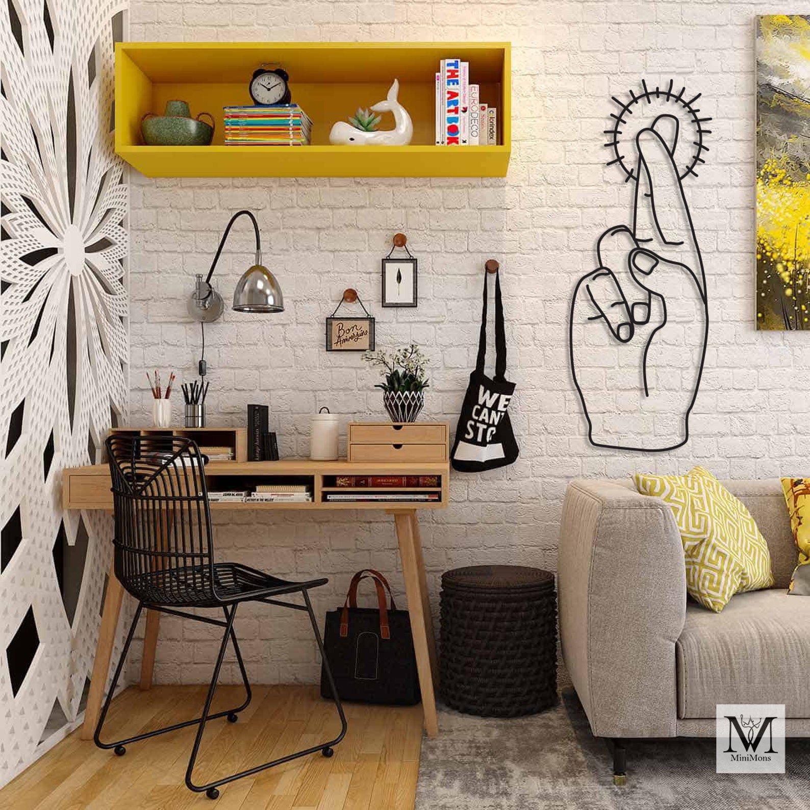 3D SHADOW EFFECT: This Woman Middle Finger Line Art casts a beautiful shadow because it stays 2 cm away from the wall by elevation screws. The shadows create a cool three-dimensional feel that makes this metal wall decor something that all your friends and family will talk about and love. When placed in natural light, the shadow of the Woman Middle Finger Line Art tends to move around the art throughout the day, which makes the art fun to watch.