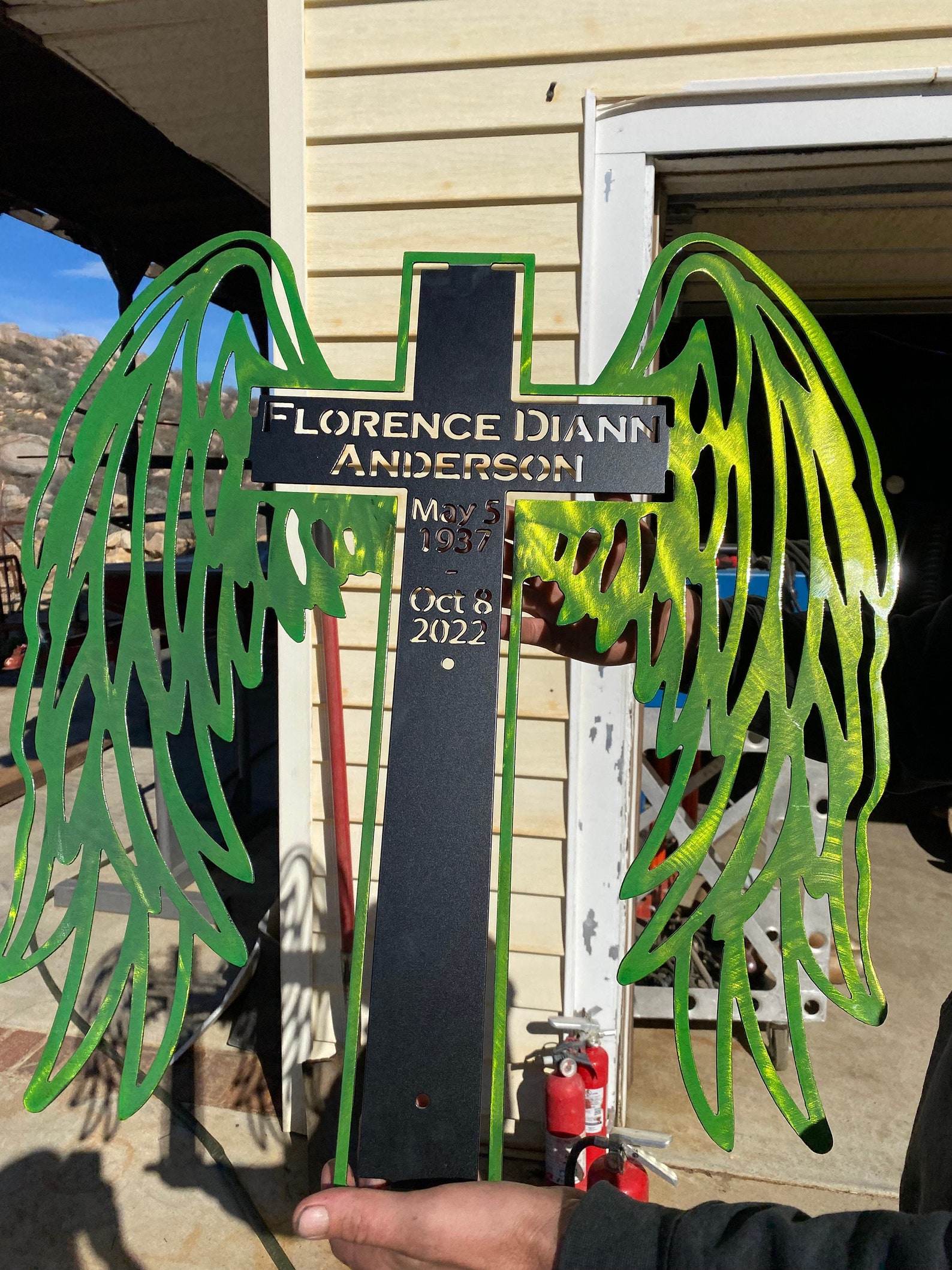 This is a custom order cross for Travis as seen in the display picture with green wings and a black center cross as seen in second picture.
