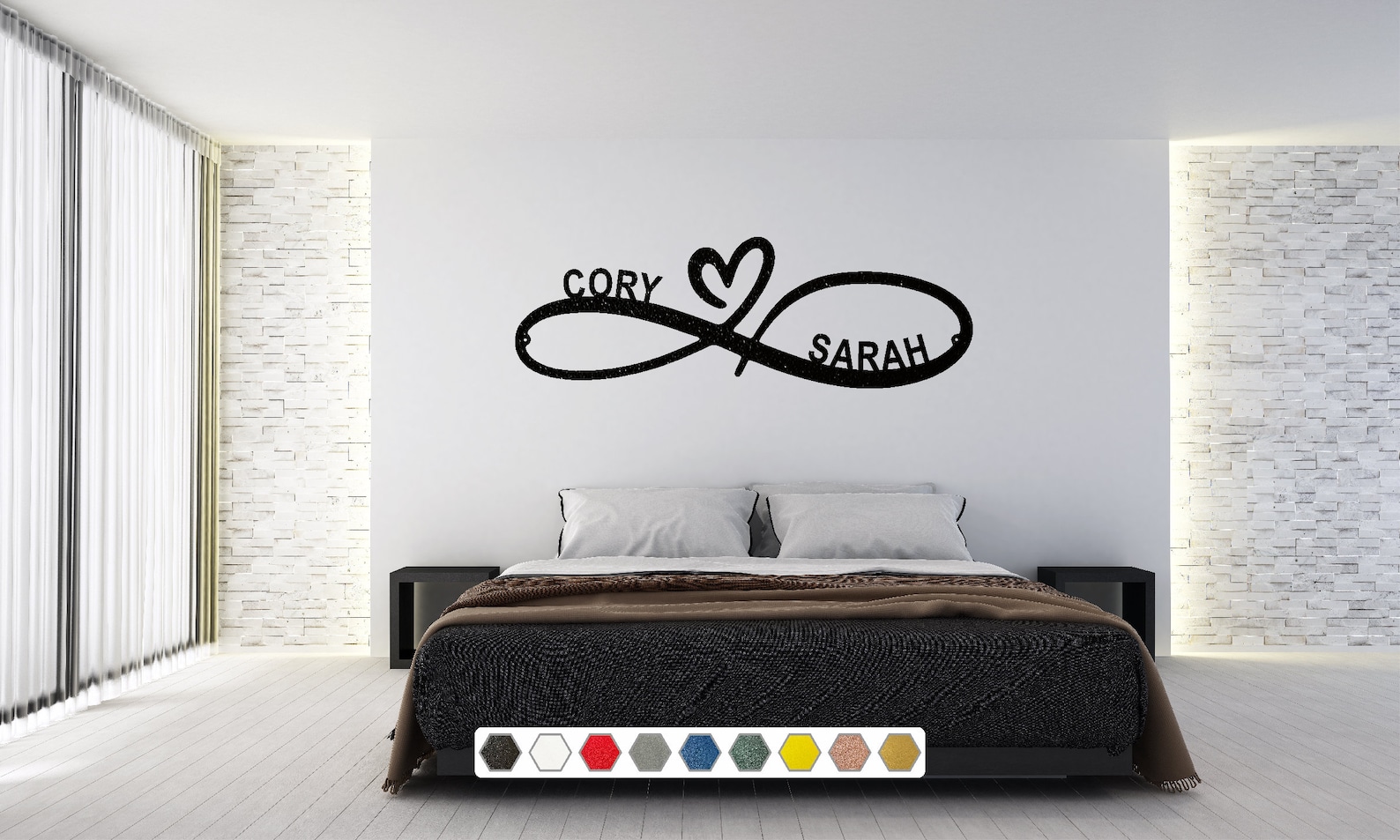 This Modern Infinity Symbol Metal Wall Art has High Personalization and each split letter monogram has its own unique shape, and each customer will have his own particular name.