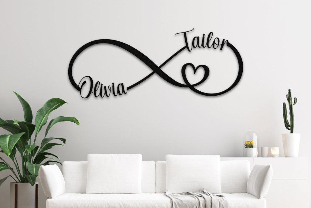 Enhance your home decor with this beautiful custom infinity metal sign. This couple name metal sign is laser cut from a 18 gauge steel, which is powered coated further to make it smooth and durable!