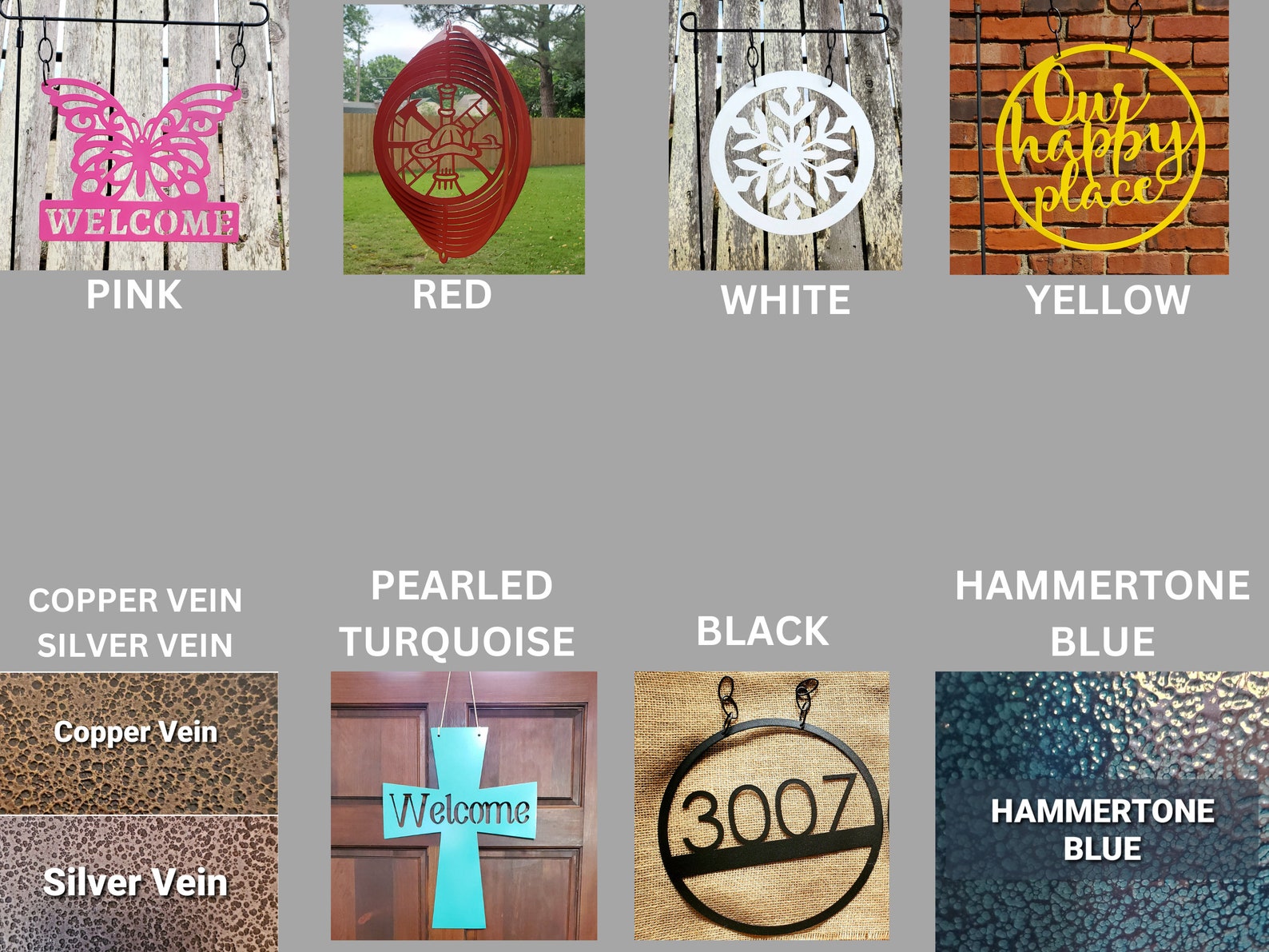 It is made out of 16-gauge metal and is powder coated. You can also get this in 11-gauge metal which is thicker. There is holes on either side of the piece for easy hanging. (Hardware NOT incl)