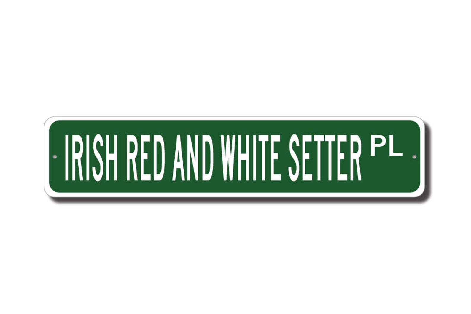 Irish Red and White Setter lovers check out this awesome street sign! This will make the perfect piece for any Irish Red and White Setter lover or Irish Red and White Setter cave. Made of premium aluminum it will stand the test of time. This sign will look great in any room, garage, barn or office! Get this sign for your favorite friend that loves an Irish Red and White Setter !