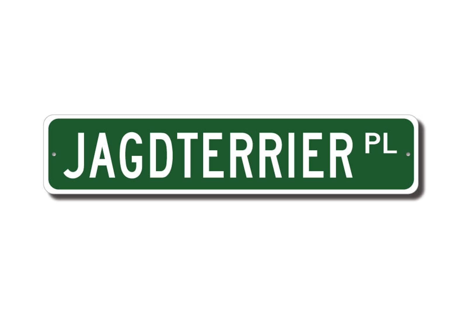 Jagdterrier lovers check out this awesome street sign! This will make the perfect piece for any Jagdterrier lover or Jagdterrier cave. Made of premium aluminum it will stand the test of time. This sign will look great in any room, garage, barn or office! Get this sign for your favorite friend that loves a Jagdterrier !