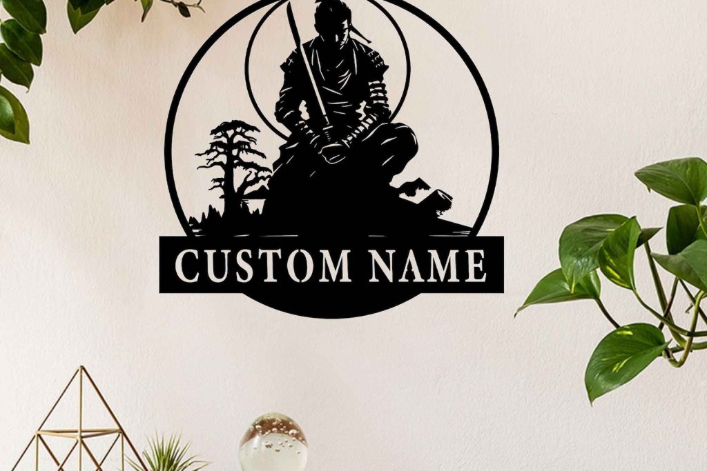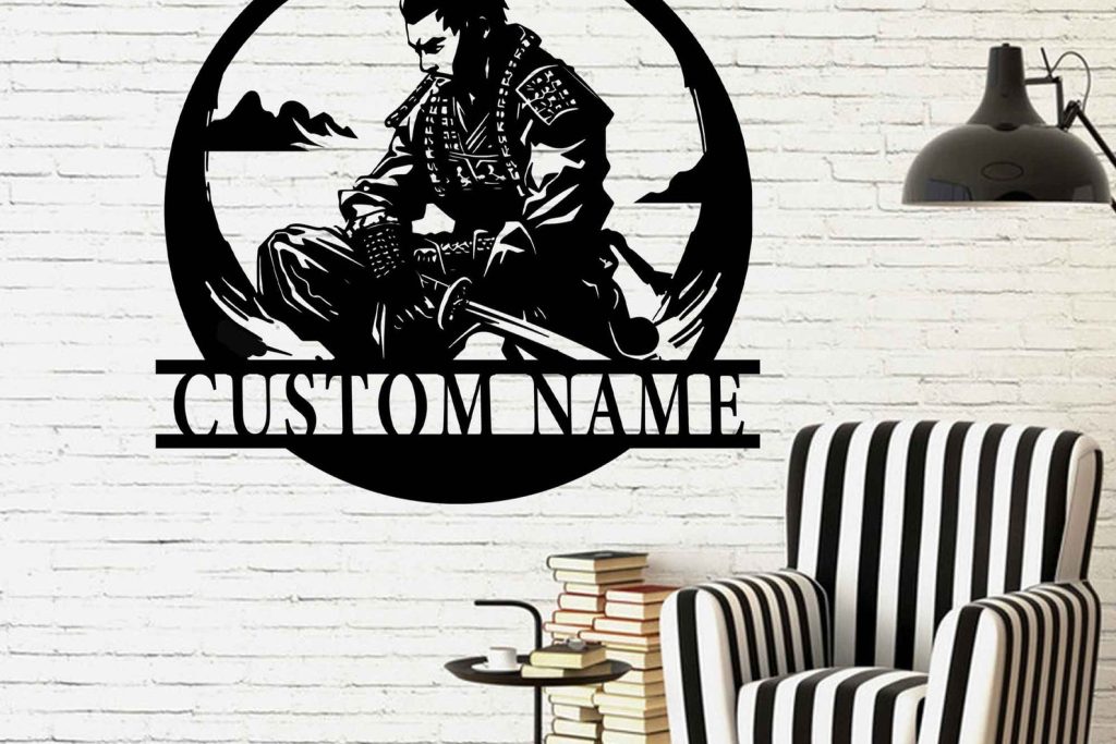 Japan Samurai Metal Art, Personalized Room Sign