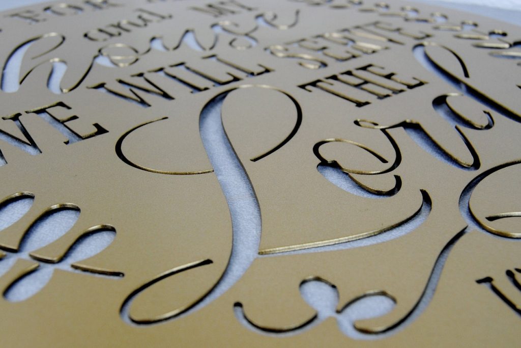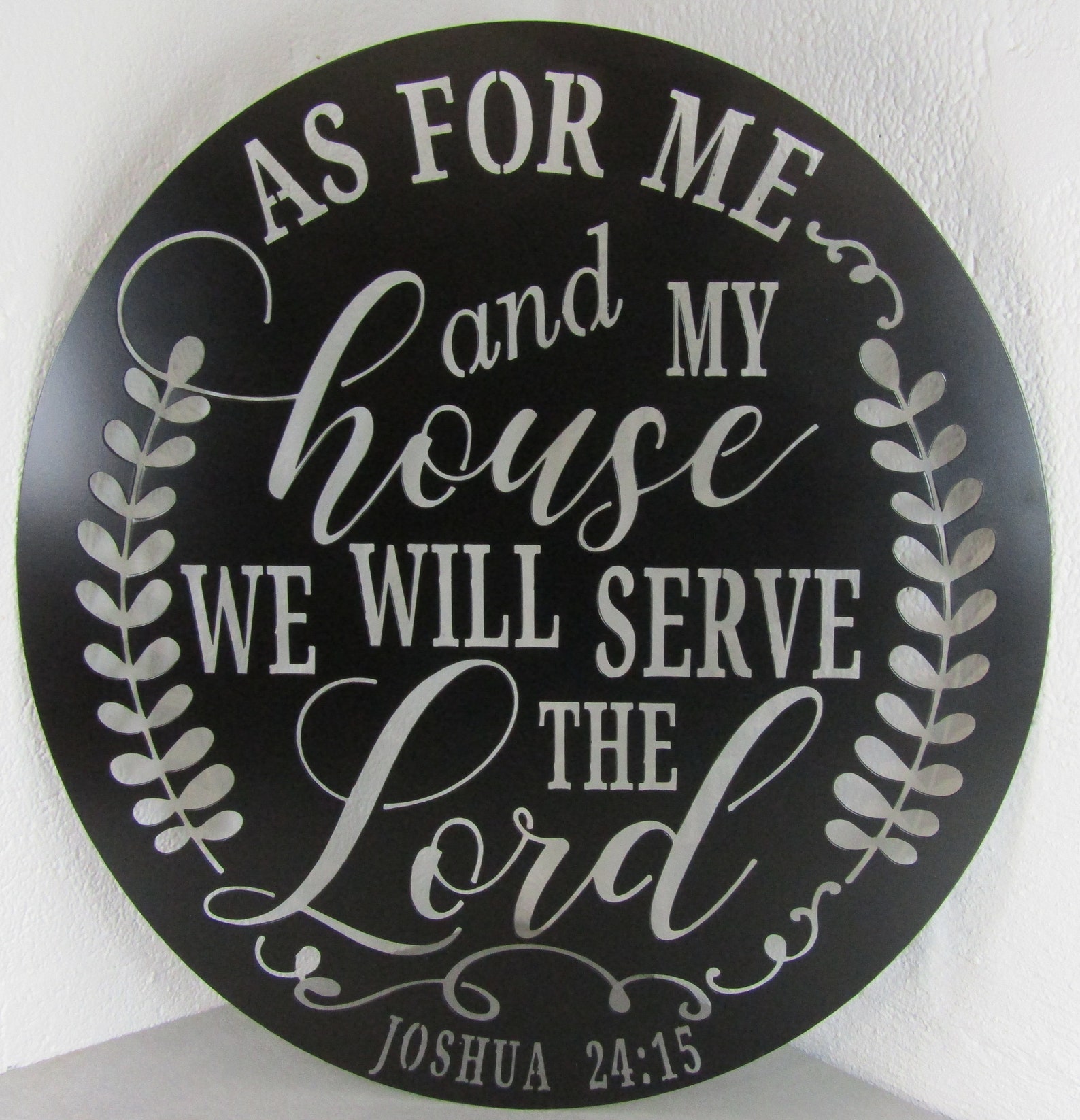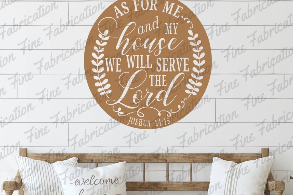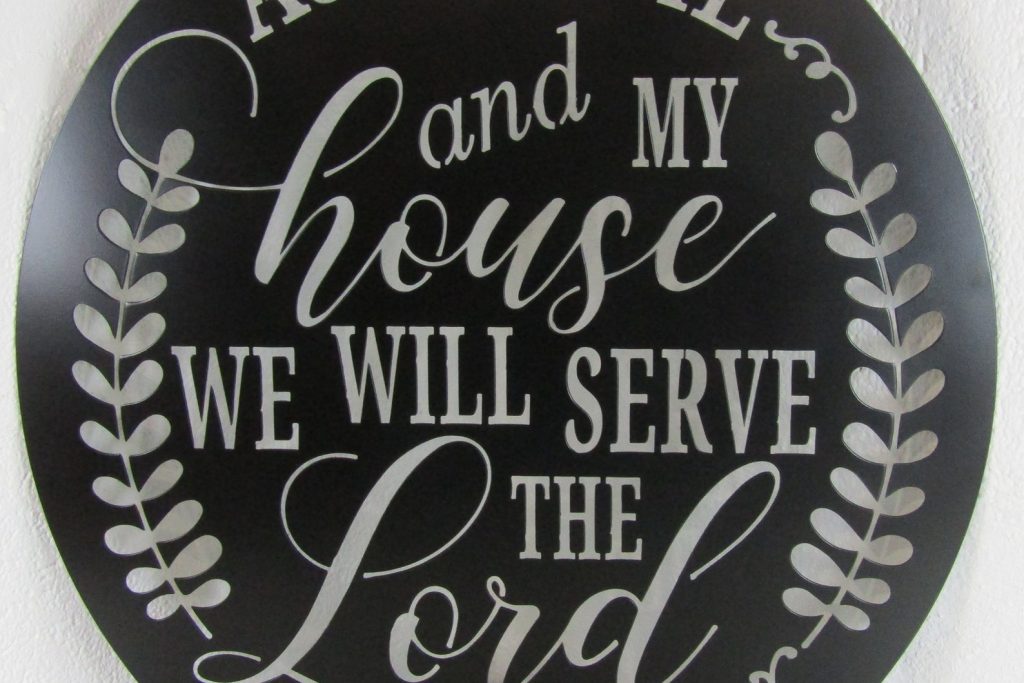 Here is a beautiful plasma cut metal sign – "As for Me And My House We Will Serve The Lord". This customized piece is the perfect gift for you, a friend or family member. Made in America of 14 gauge steel – thicker than most!