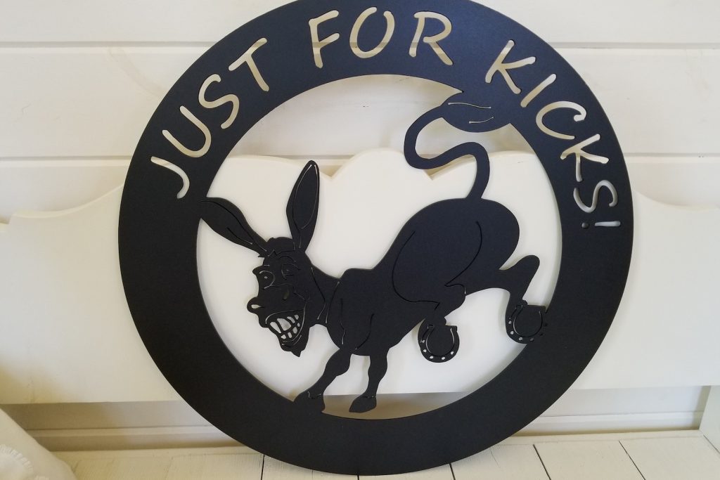Just for Kicks Sign – Metal Donkey Fun Decor