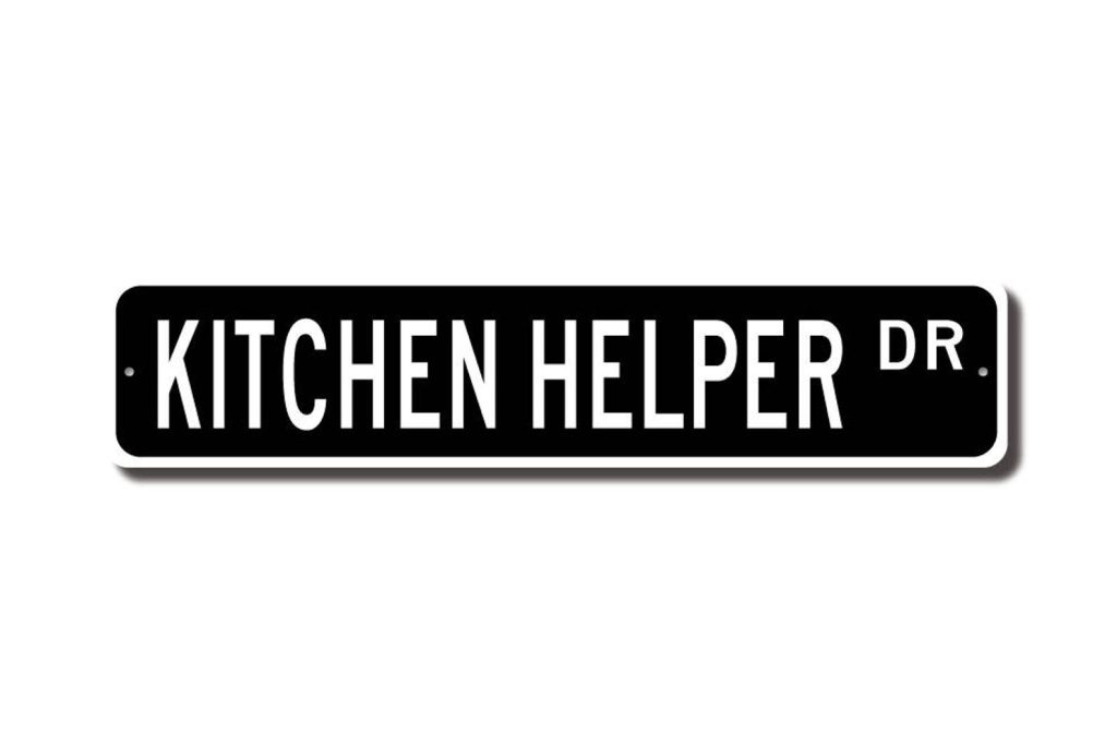 Kitchen Helpers check out this awesome street sign! This will make the perfect piece for any Kitchen Helper or maybe you are a Kitchen Helper looking for a cool decor piece. Made of premium aluminum it will stand the test of time. This sign will look great in any room, home den, cave, or office! Get this sign for your favorite Kitchen Helper !