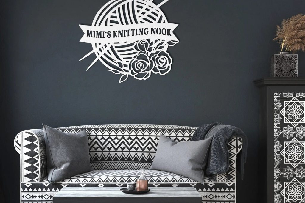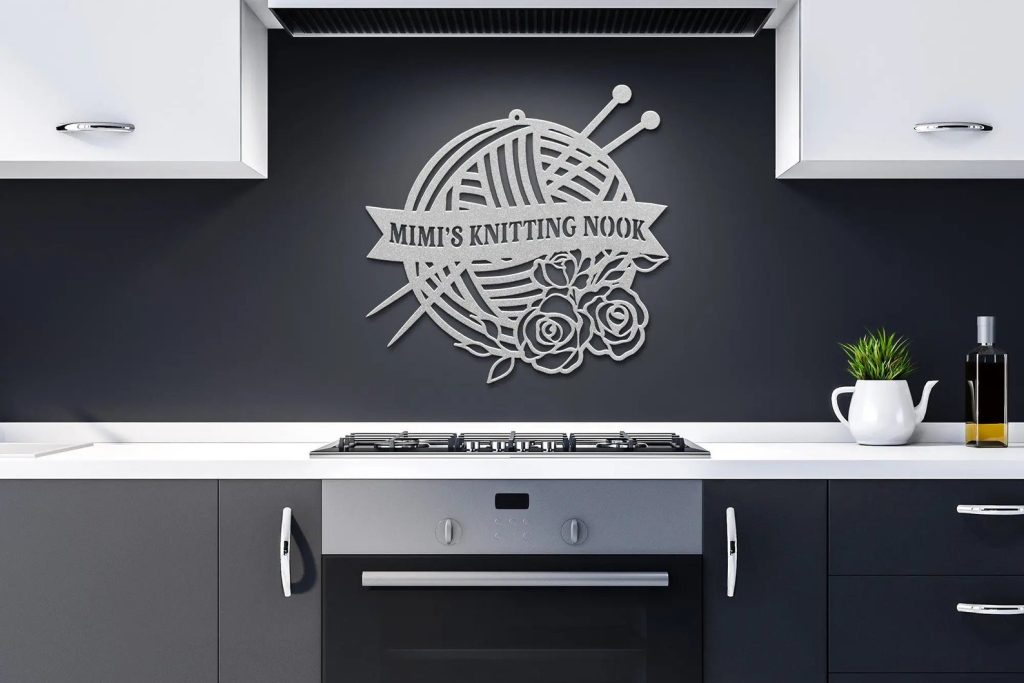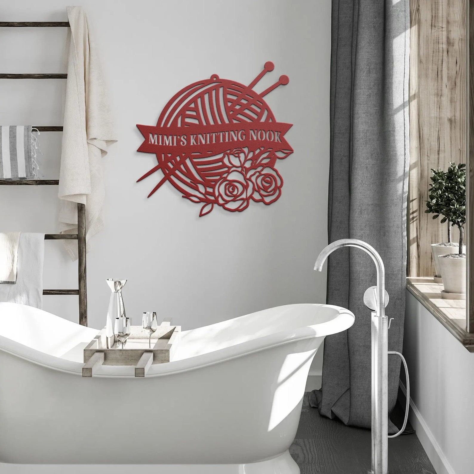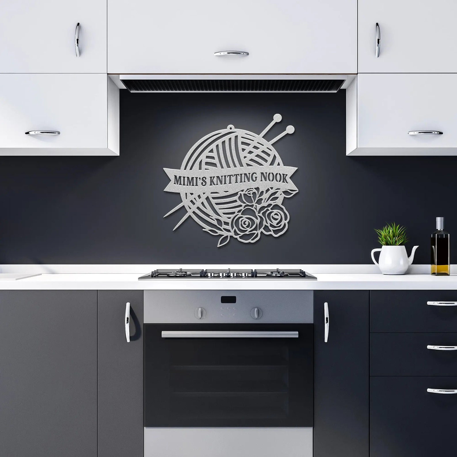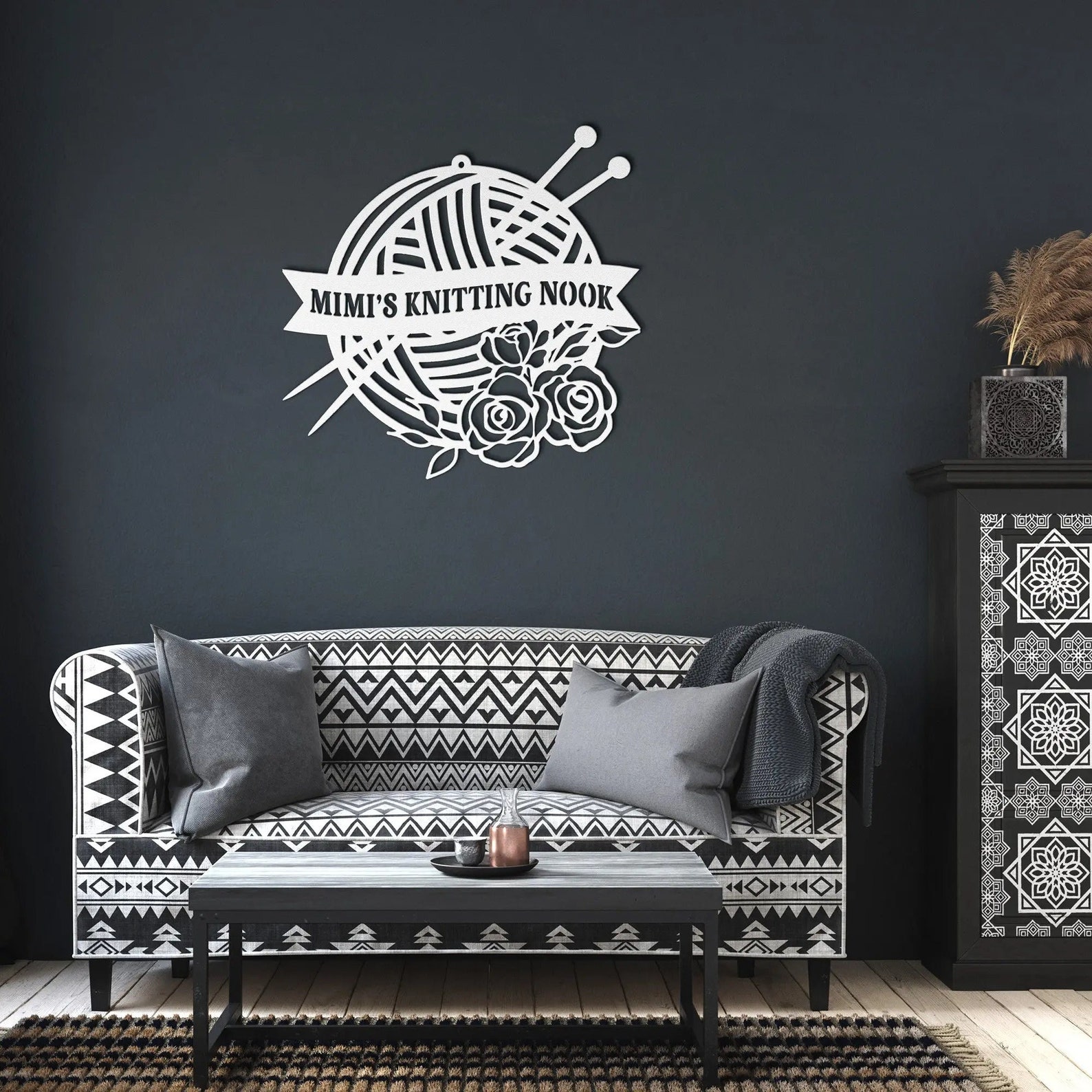 Knitting Nook Metal Sign – Personalized, Mimi, Grandma, Nana, Name Knitting Wall Art, Crochet Decor, Knitter Gift