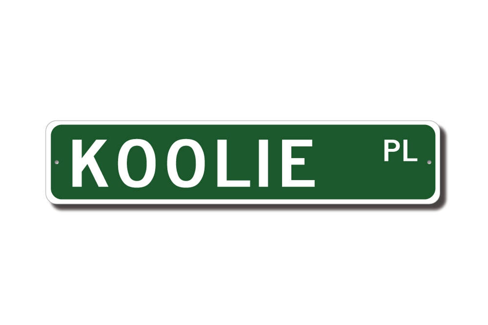 Koolie lovers check out this awesome street sign! This will make the perfect piece for any Koolie lover or Koolie cave. Made of premium aluminum it will stand the test of time. This sign will look great in any room, garage, barn or office! Get this sign for your favorite friend that loves a Koolie !