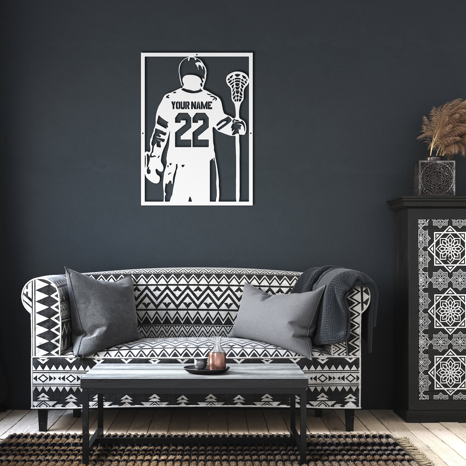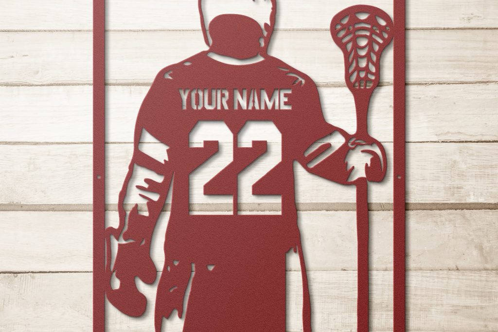 Elevate your home decor with this beautiful custom Lacrosse jersey metal sign!