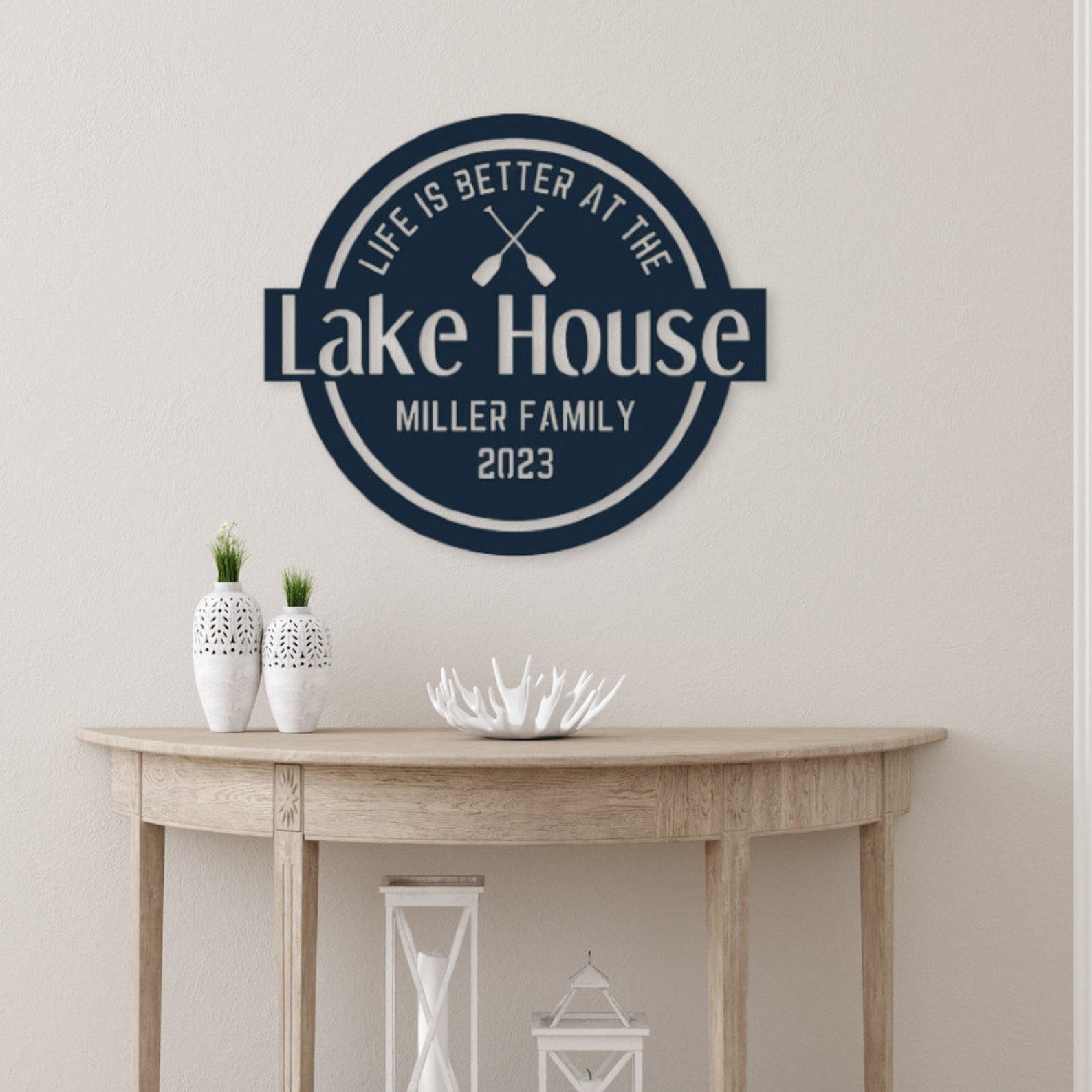 Elevate your lakeside retreat with our personalized Life is better at the lake house sign. Crafted from durable 16- gauge metal, this Custom Metal Sign adds a touch of charm to your waterfront haven. Whether you9;re looking to enhance your outdoor space or searching for a thoughtful Custom Gift, our Metal Sign is the perfect choice. Personalize it at the bottom to make your mark on the lake house, creating a warm and welcoming atmosphere for friends and family. This Outdoor Sign is not just a piece of art; it9;s a statement that reflects your love for the lake.