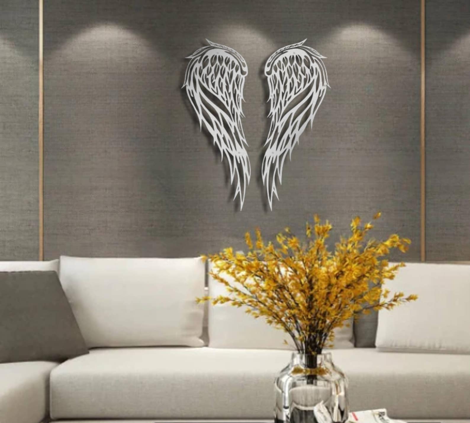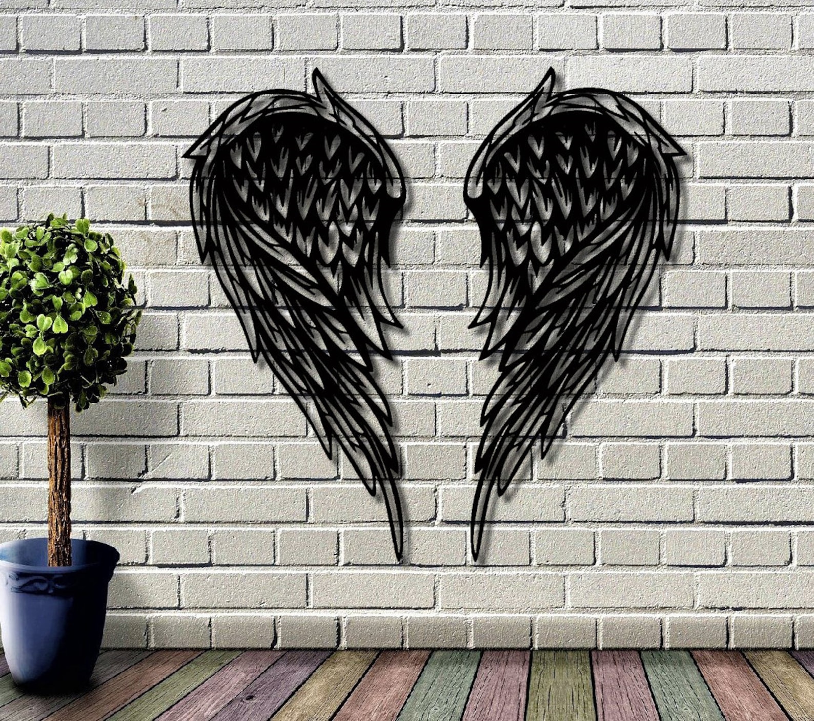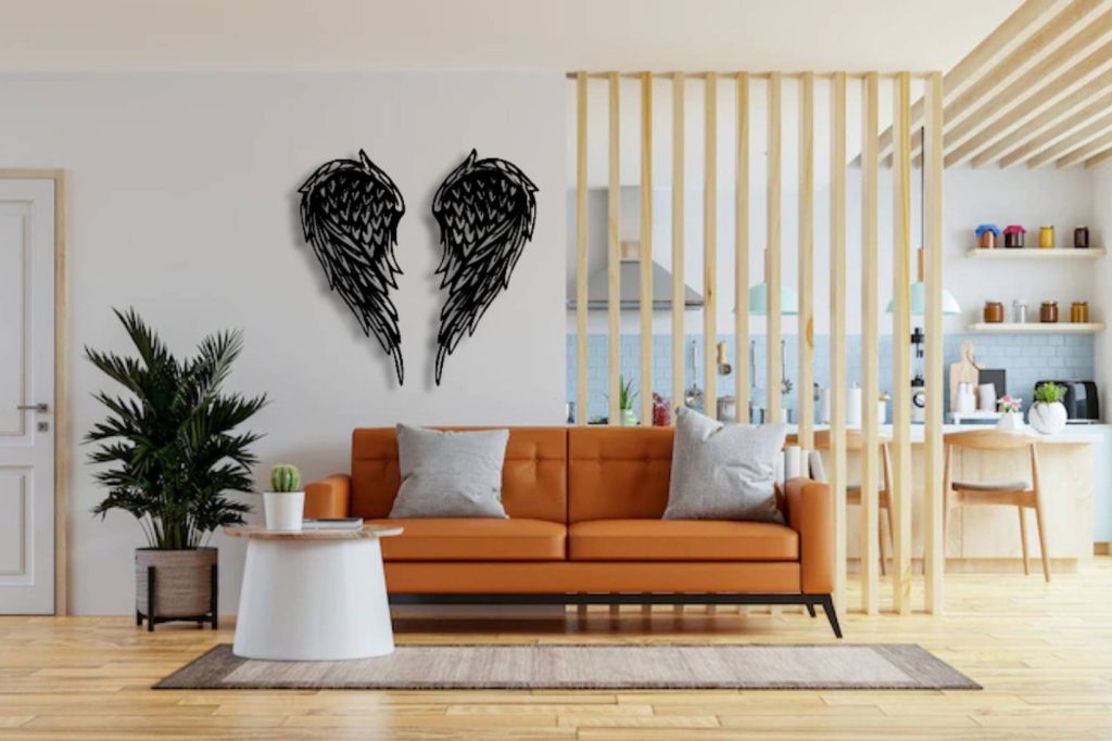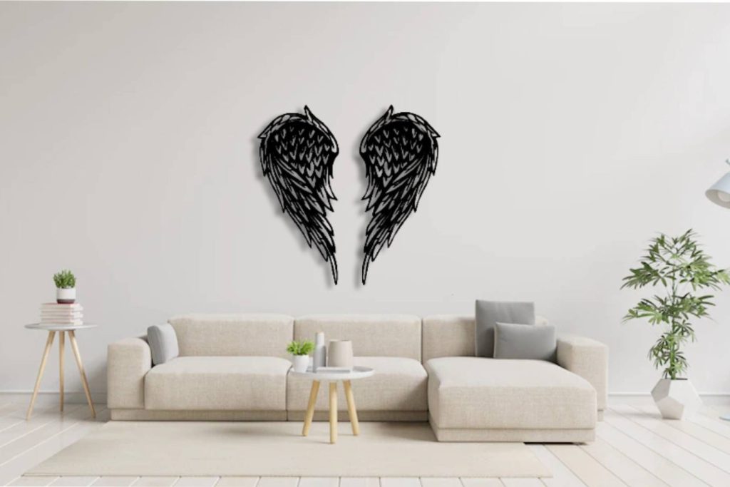 This minimalist metal wall art a best gift idea.You may give this metal wall hanging as wall decoration present on many occasion, for example you may bring it to your mother,your new married friend as wedding gift or best friend as housewarming gift who recently buy a new house or who redecorate her home,your corporate gift for your collegue.This design of one of our wall decor collection may be named as metal angel sign wall hanging,metal angel wall sing,metal interior wall decor,angel wings metal sign, metal angel wings wall decor,memorial day wall hanging,memorial day wall decor,grief day decor,grief and mourring gift,Valentin day9;s gift,nursey wall decor,baby shower gift,angel wings wall sign,angel wings sculpture for wall,