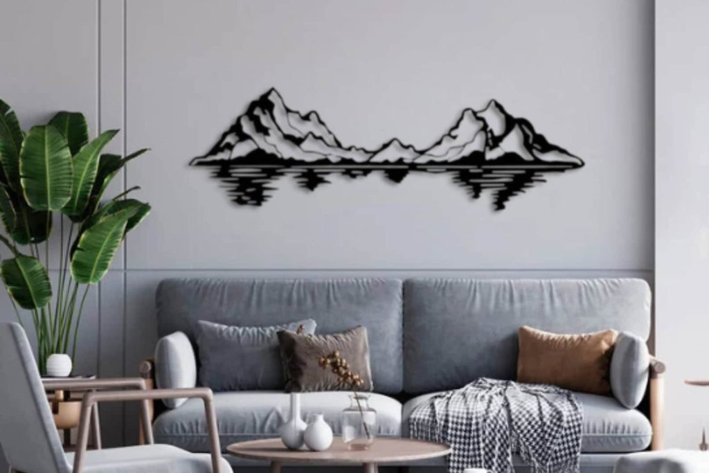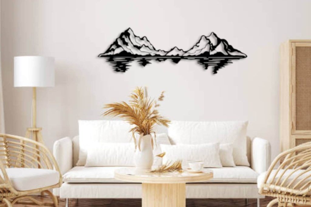 Be the first to review “Large Mountain Metal Wall Sculpture – Farmhouse Decor”
