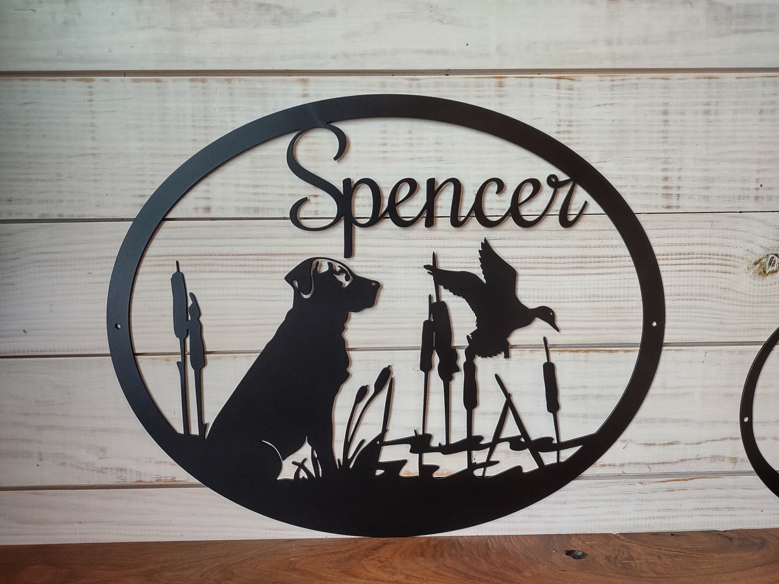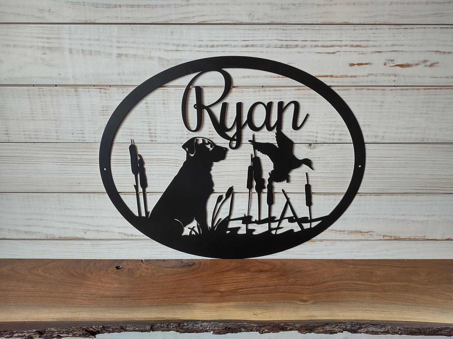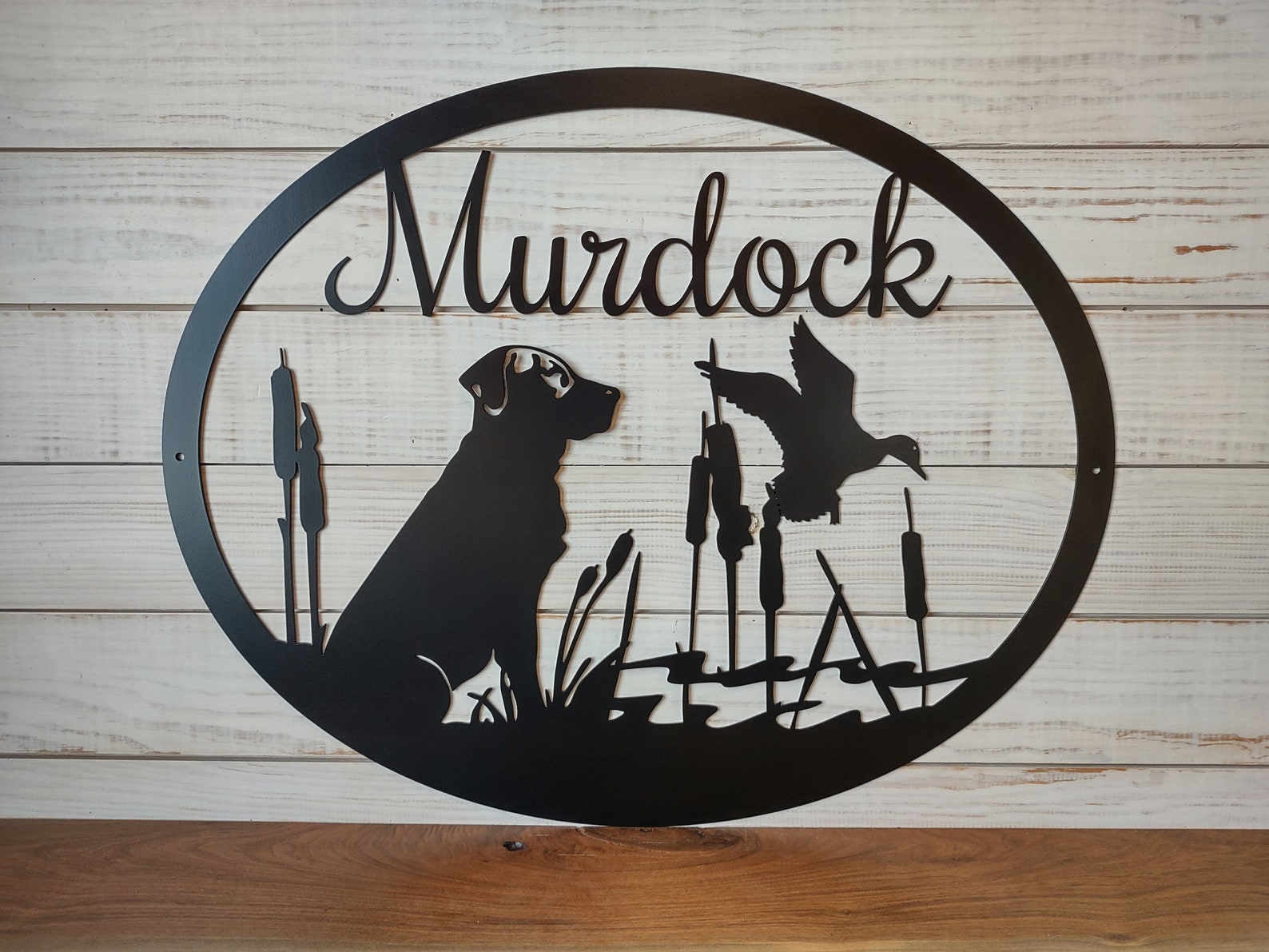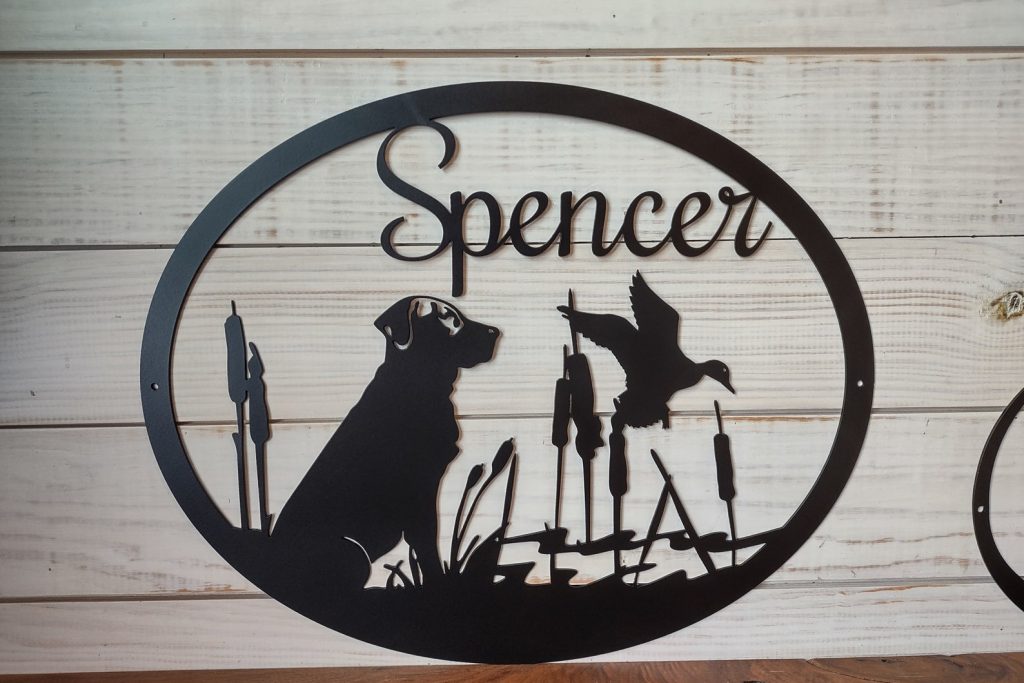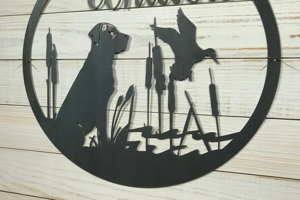 Personalized Large Metal Dog and Duck Hunting Scene – Welcome Sign – 24 inch Rustic Metal Decor