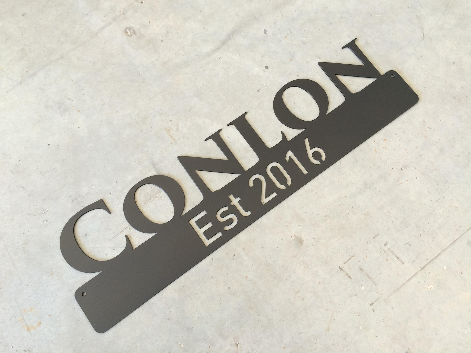 This custom metal sign with established date is a perfect gift for anyone! We take your last name and use a plasma CNC table to produce this unique and minimalistic sign. This product is great to hang inside your home, on your door or patio, in your man cave, and many more places. This is a great gift within your family, and makes a perfect wedding or housewarming gift.