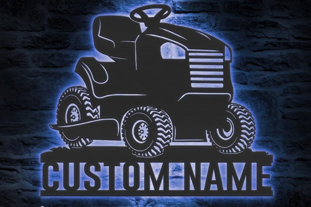 Lawn Mower Art – LED Personal Metal Landscaping Sign