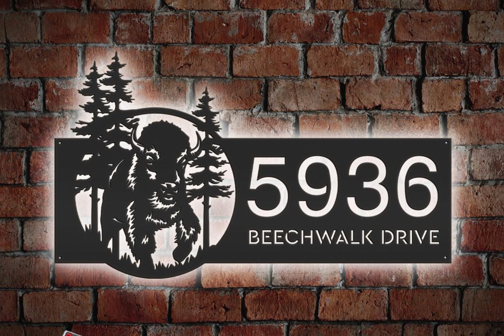 Be the first to review “LED Bison Forest Metal Address Sign”