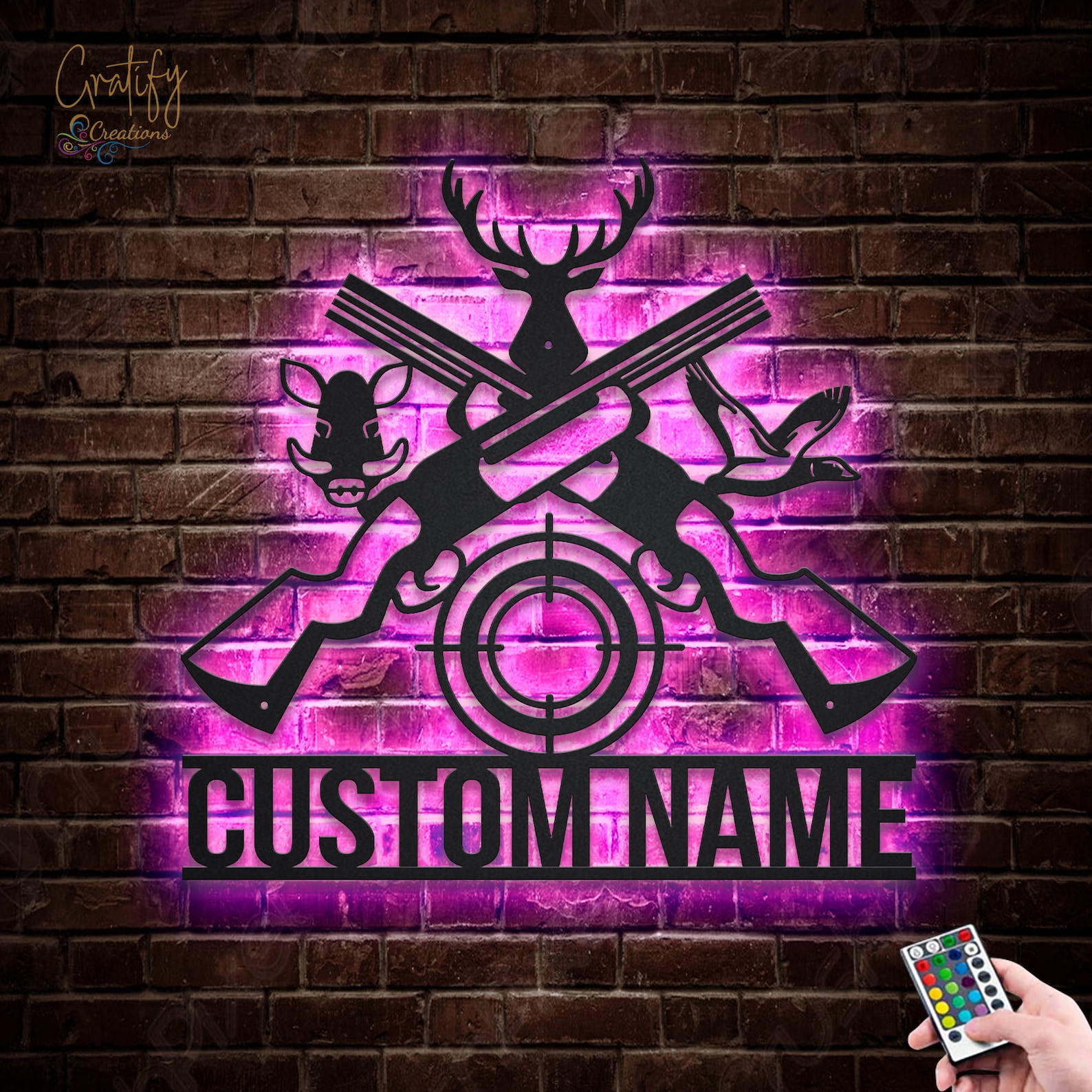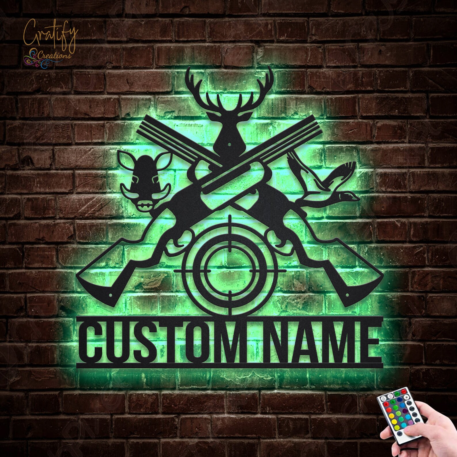 Revamp your hunting cabin with our Custom Deer Hunting Monogram Metal Sign that comes with LED lights. It9;s a perfect addition to your collection of hunting memorabilia. Made with high-quality metal, this sign features a stylish deer design that will surely elevate the aesthetics of your space.