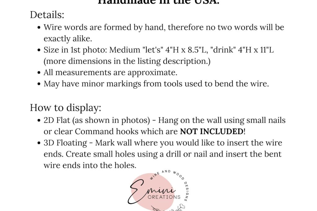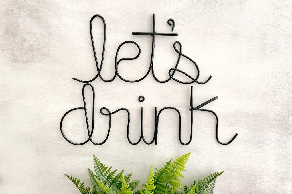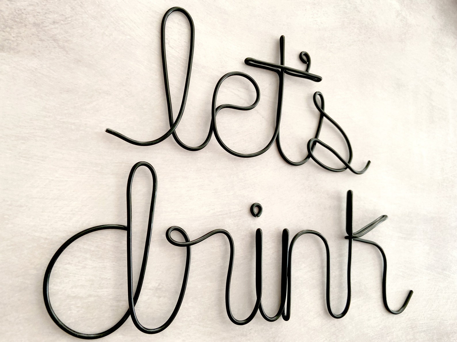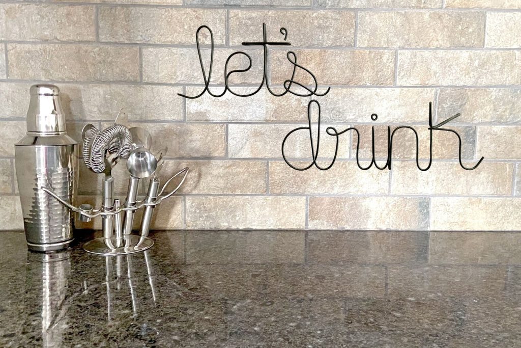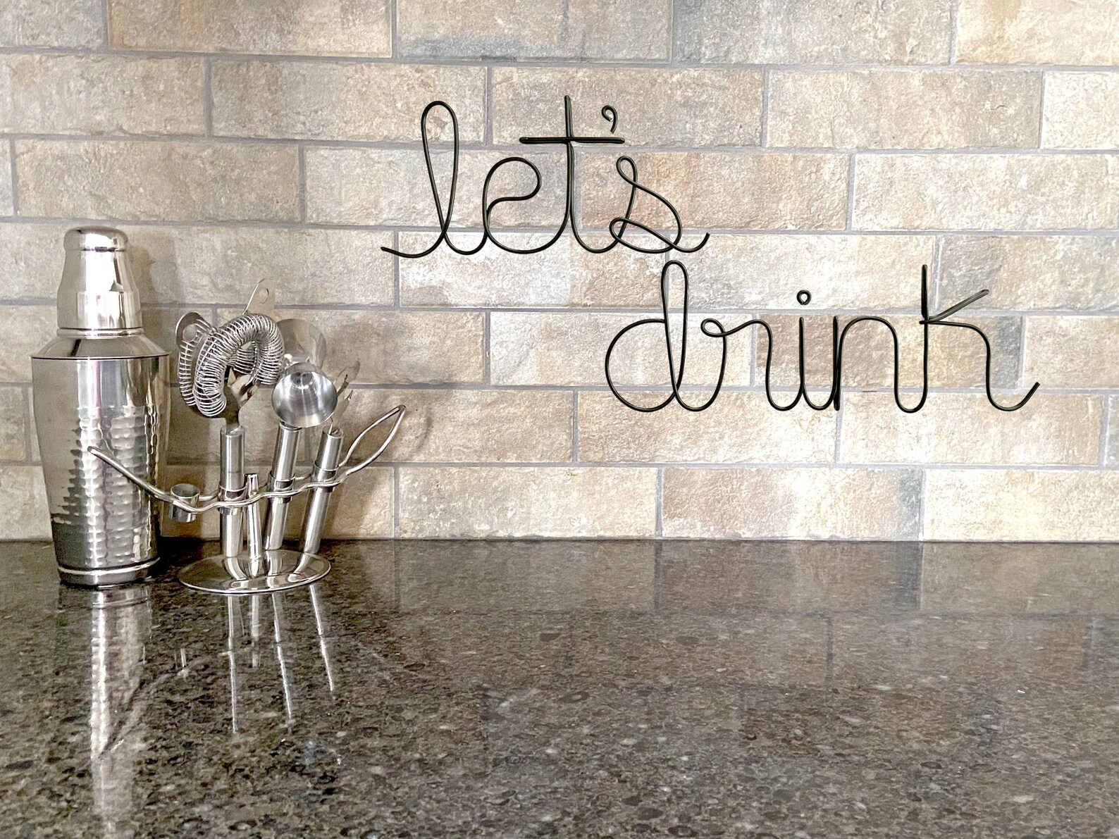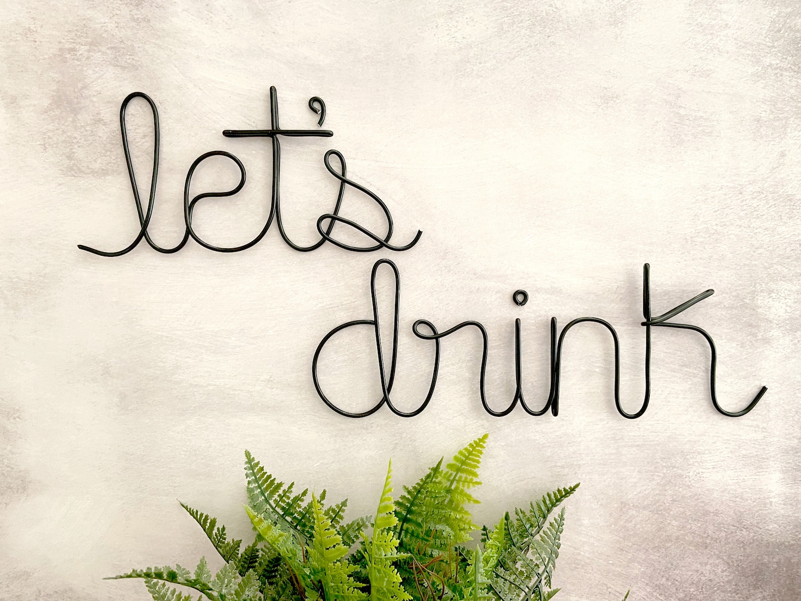 Let9;s Drink has a fun and modern vibe for the cocktails area of your home whether it9;s the kitchen, basement bar, man cave, garage or patio This wire word art is versatile and brings a cool vibe to the room. You can even display this sign at a wedding, shower, or party for a unique decor addition.