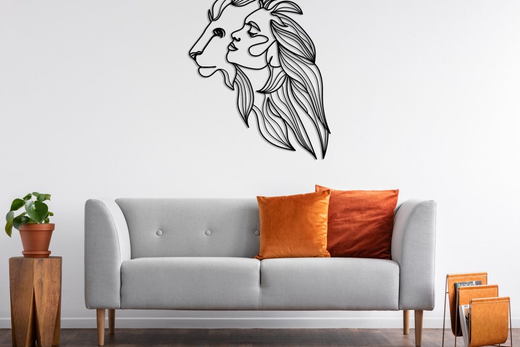 Lion Head with Woman Metal Wall Art, Metal Lion Sign, Unique Home Decor, Modern Minimalist Design Wall Art, Woman Gift, Living Room Office Art