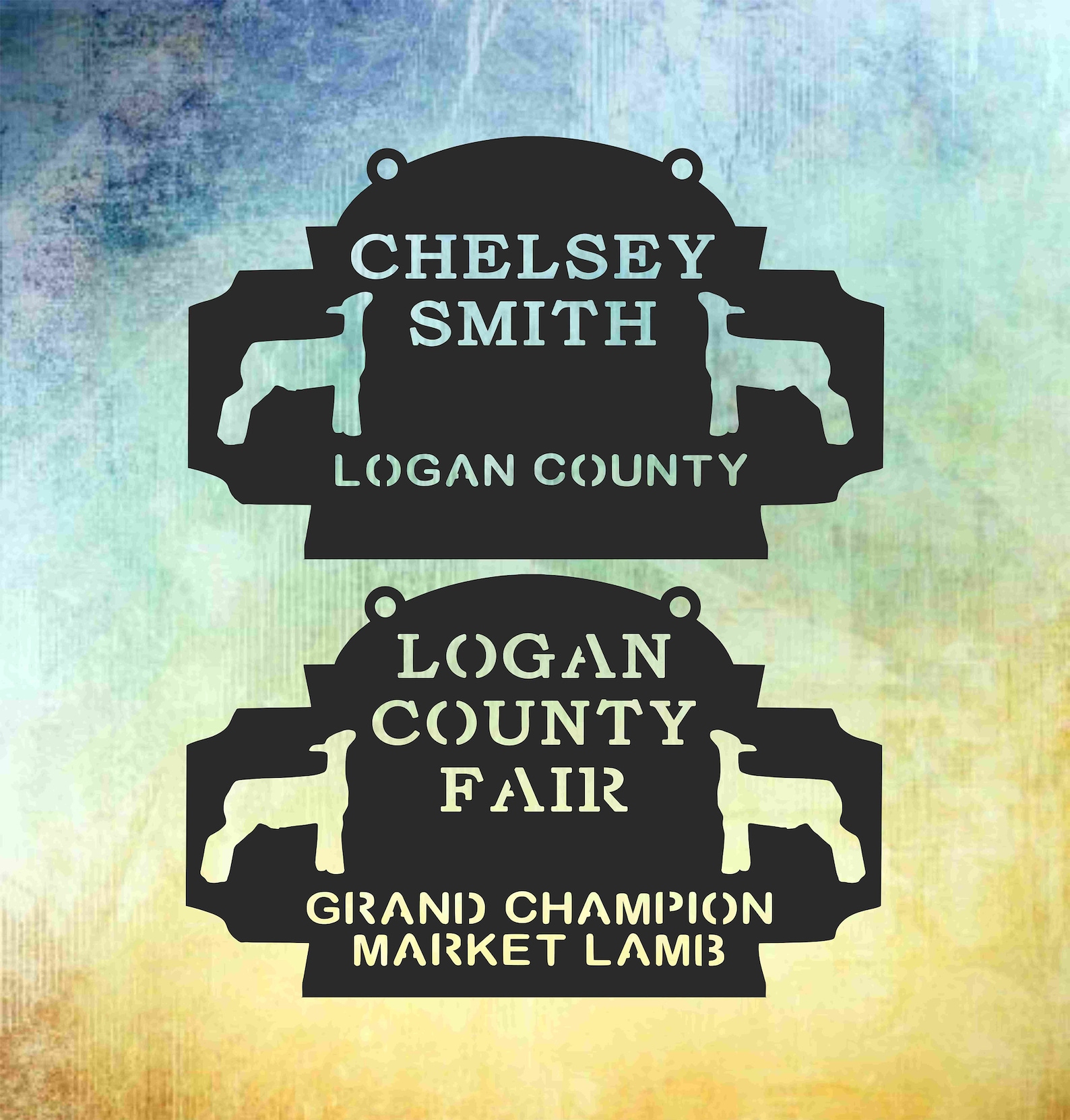 Goat, Sheep, Pig, etc 16 gauge custom metal livestock award or pen sign. 15" wide by 9" tall, 18" wide x 119; tall, 24" wide x 15" tall. Metal plasma cut show sign or award with your choice of animal. There is a picture with the choices of animals.