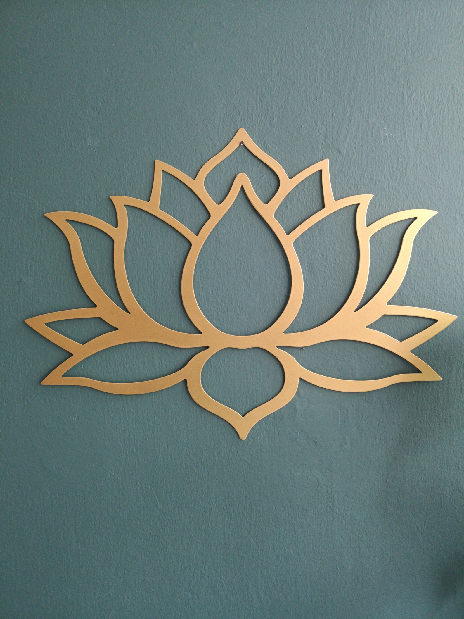 This Gold wall decor – Large Lotus Wall Art will perfectly add character to your modern living-room decor or yoga studio decor. This lotus wall hanging can be also be part of your bedroom and Entry walls. If you want to use this gold metal artwork for your office, it is also a perfect wall hanging for your modern office decor.