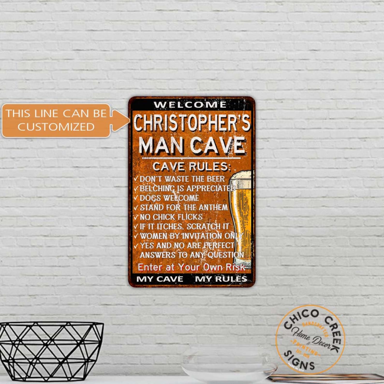 Be the first to review “Man Cave Sign – Rules Sign, Rusty Metal Sign”