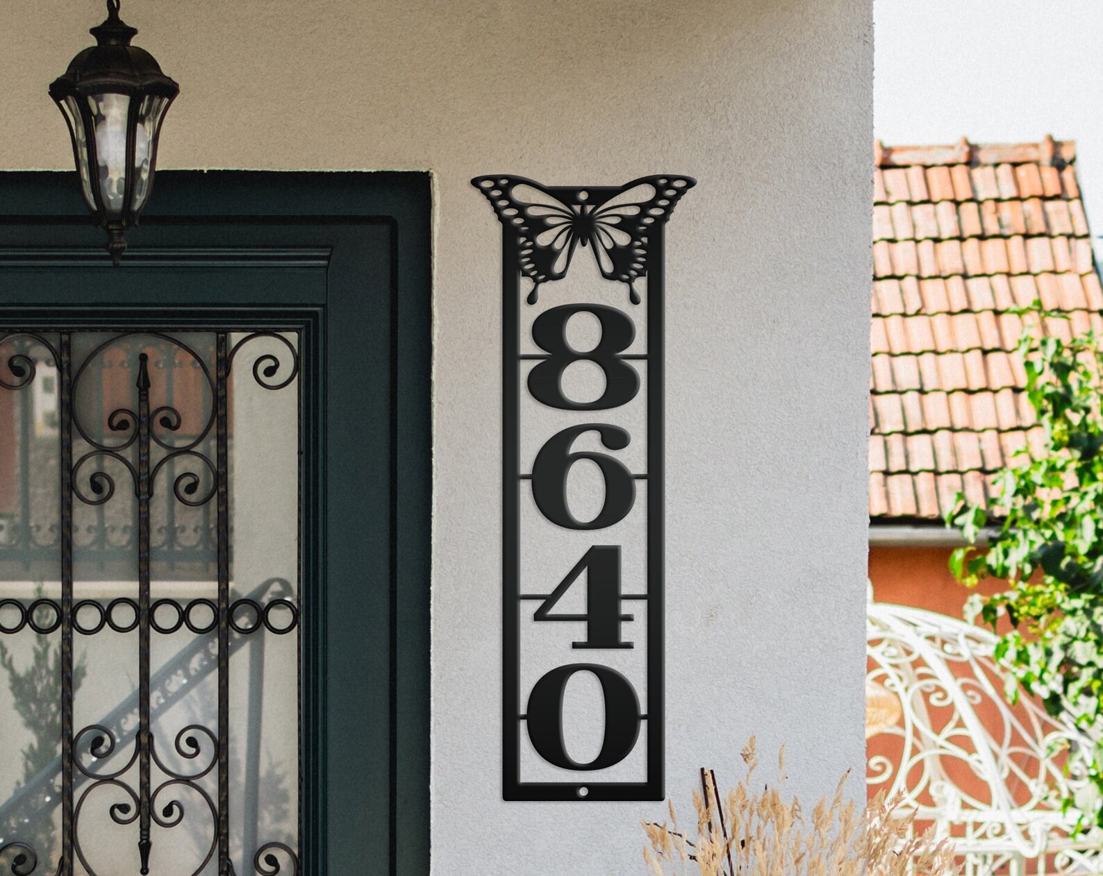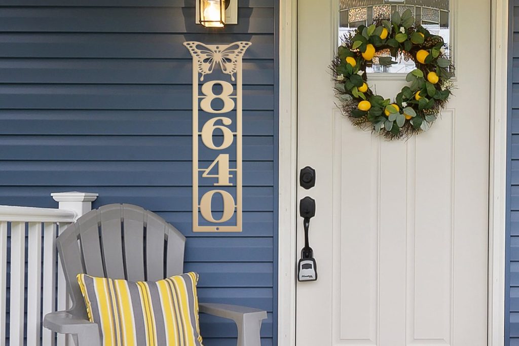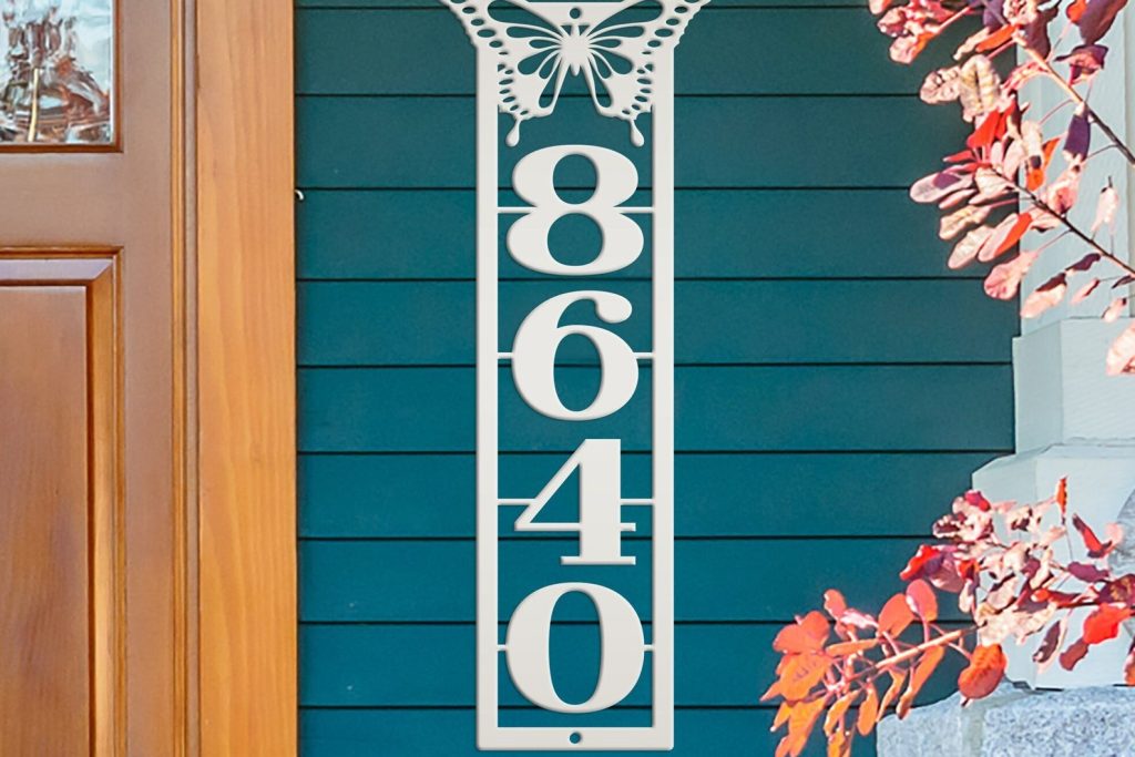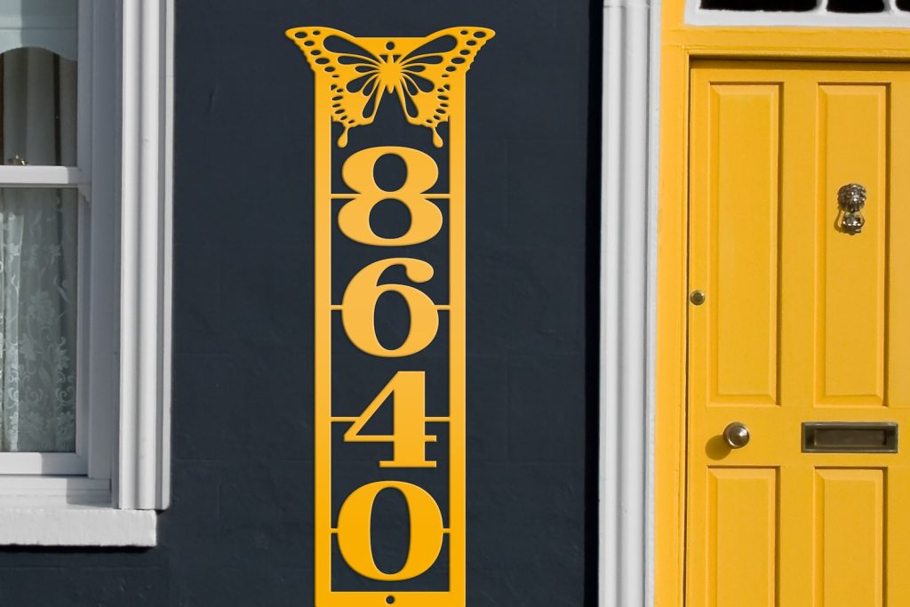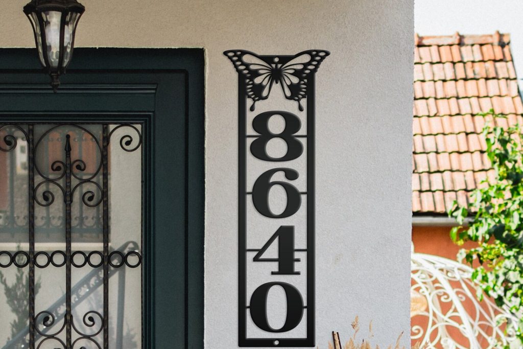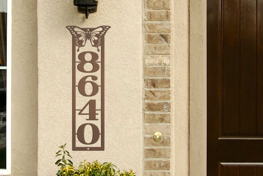 Be the first to review “Metal Address Sign with Vertical Numbers & Butterfly Detail”