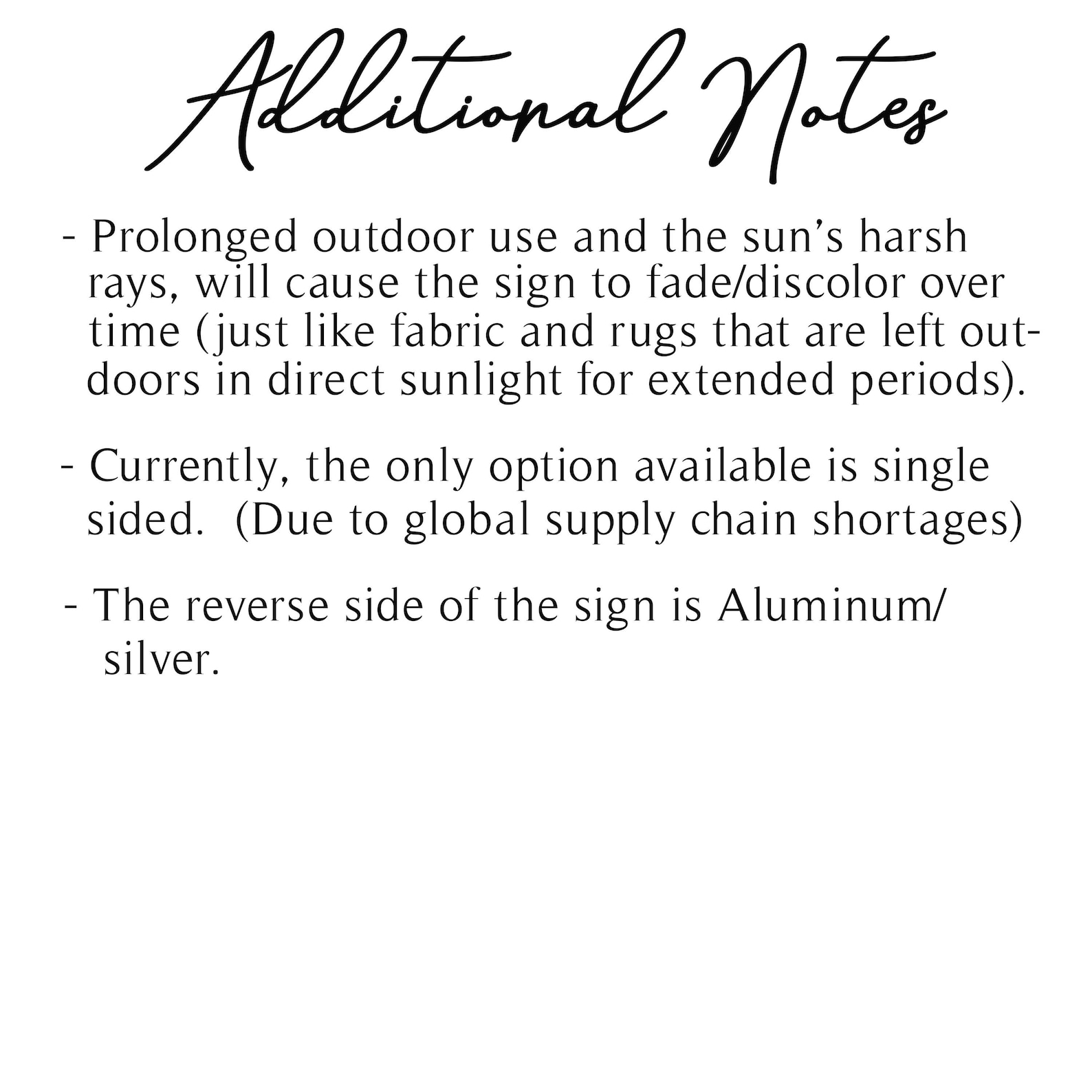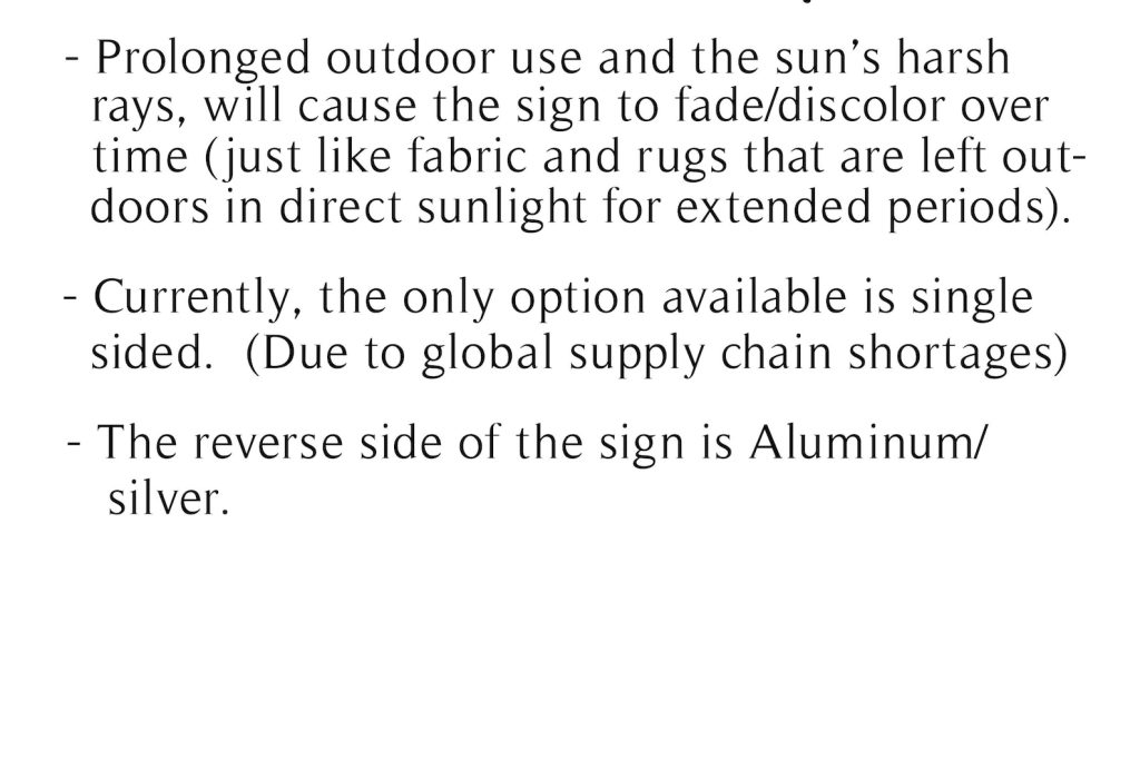 This beautiful, vibrant and high quality sign will add a personalized touch to any yard! If the address is printed on 1 side, the back side of the sign will be aluminum (silver). The sign can be hung from any standard size flag stand or yard stake, from a mailbox, or even a lamp post. (2) holes have been added to the top of the sign for easy hanging.