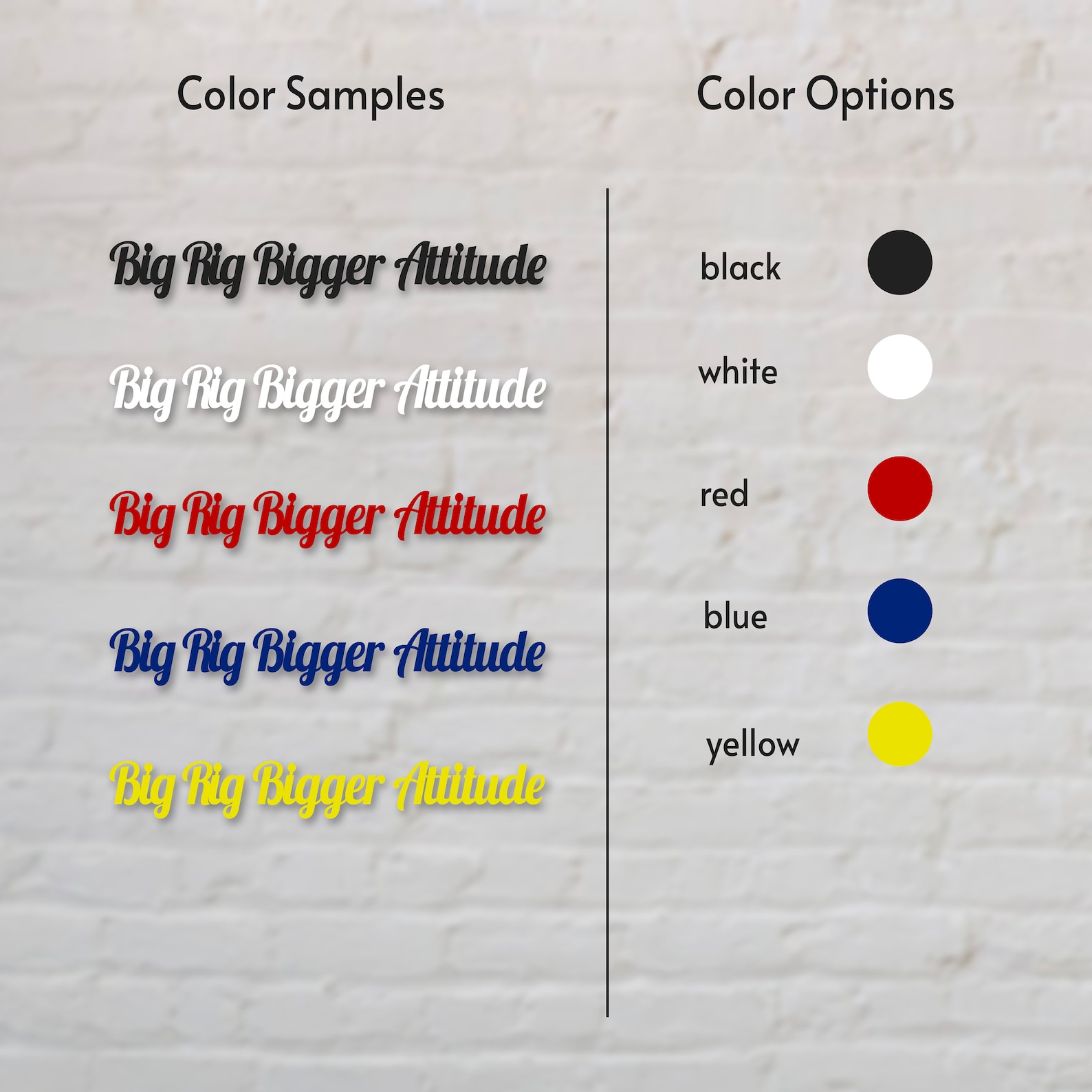 In summary, the Metal Big Rig Bigger Attitude Sign is a durable, versatile, and personalized piece of home decor that is perfect for those who love contemporary styles. With its bold design and eye-catching colors, this sign is sure to make a statement in any room of your home. So why wait? Order yours today and add a touch of personality to your home decor!