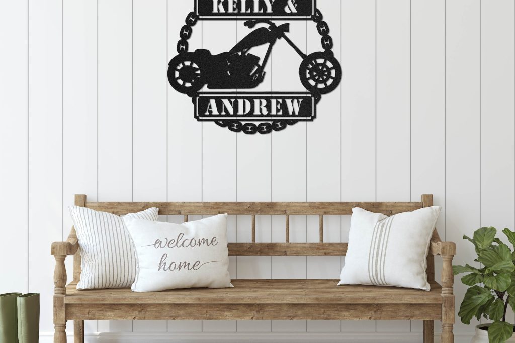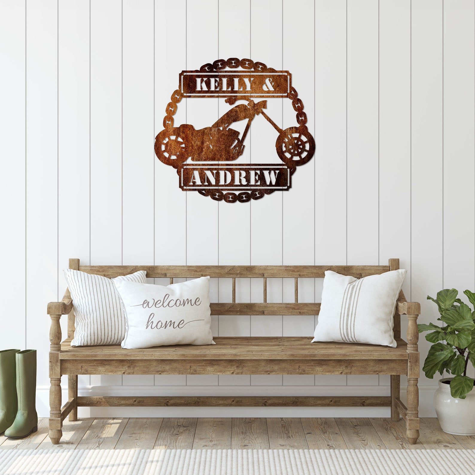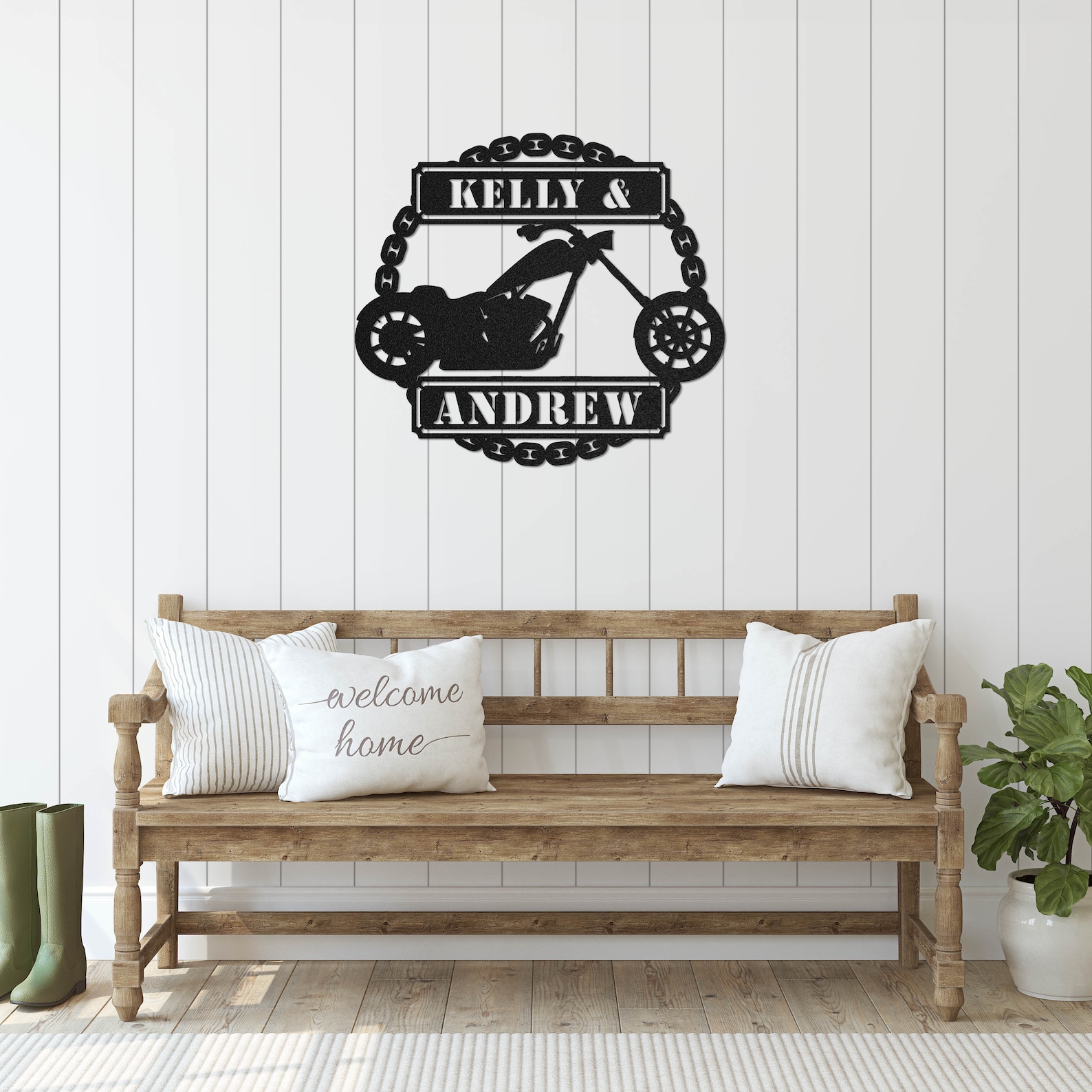 Sweet Ride9;s laser-cut metal Chopper Personalized Garage Sign is the perfect addition to your man cave or garage