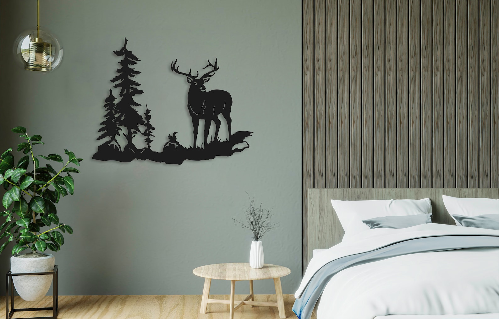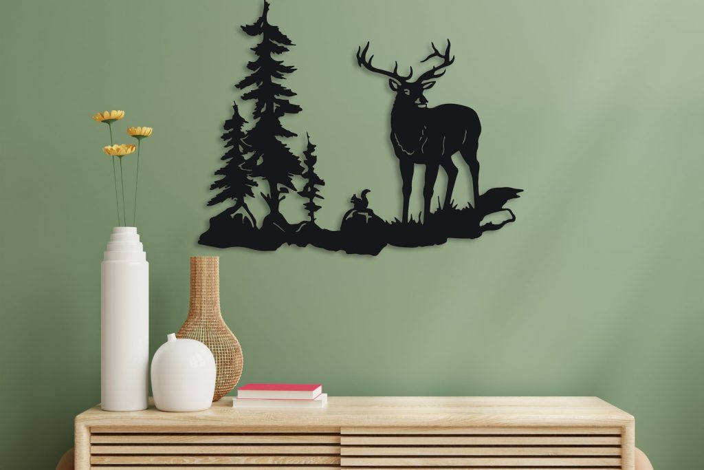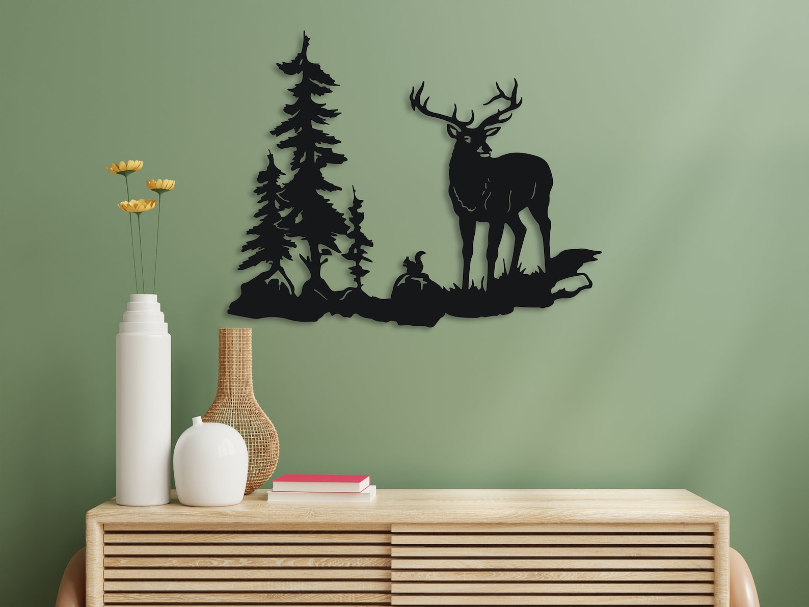 Metal Deer Wall Decor, Tree Mountain Wall Art, Nature View Wall Art, Metal Forest Sign, Deer Mountain Wall Art, Wildlife Metal Wall Decor