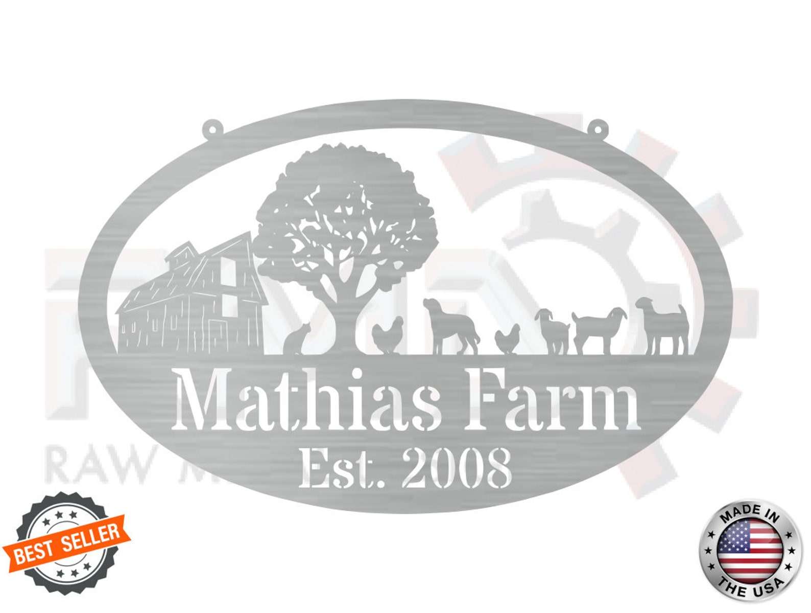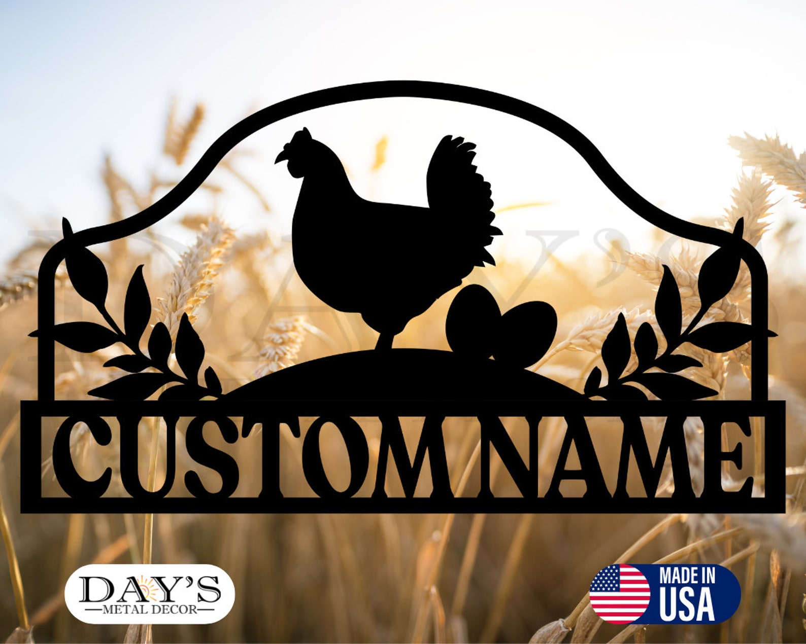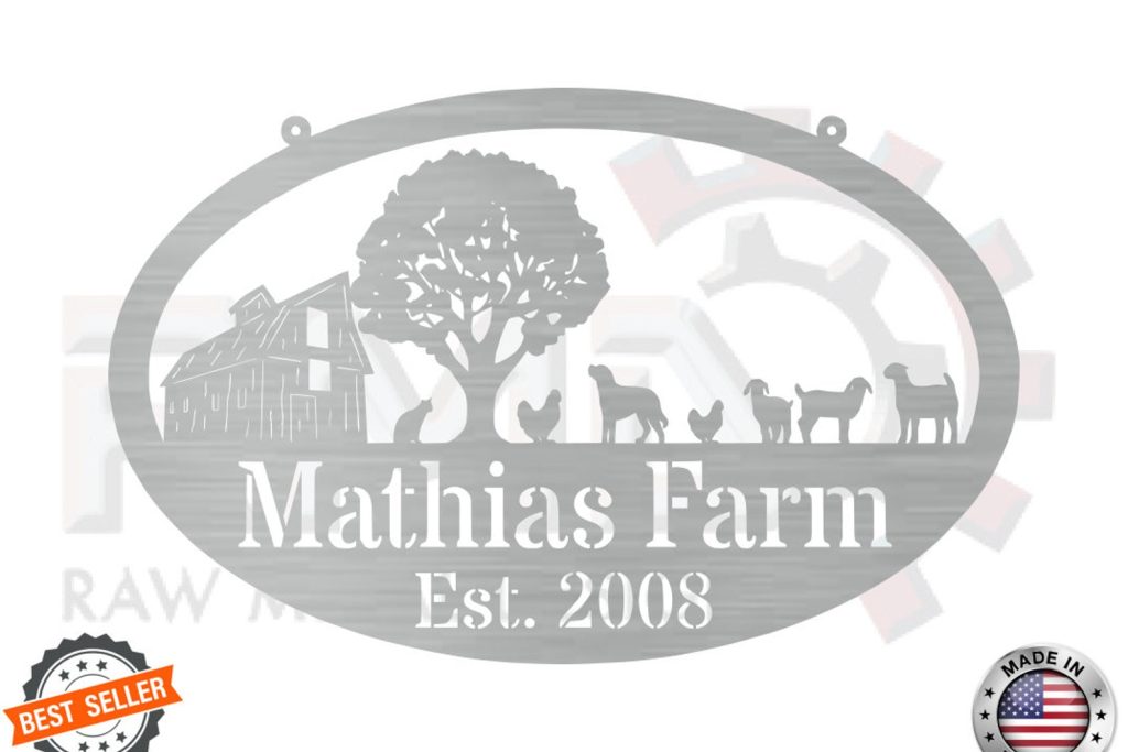 Metal FARM SIGN, Barn and Chickens, Personalized Family Name
