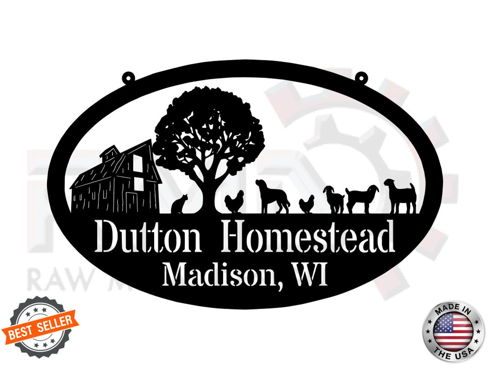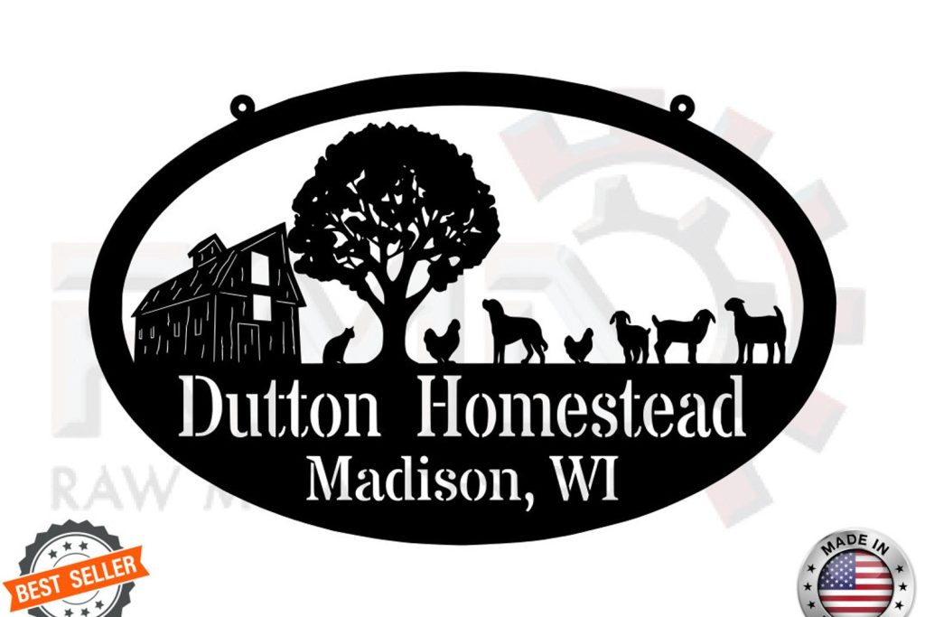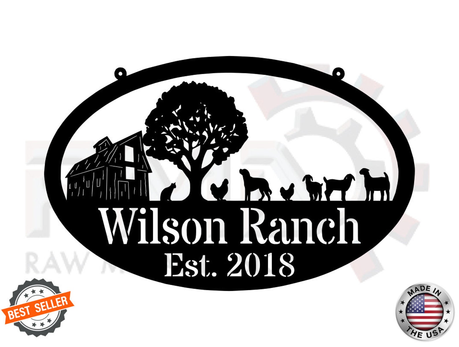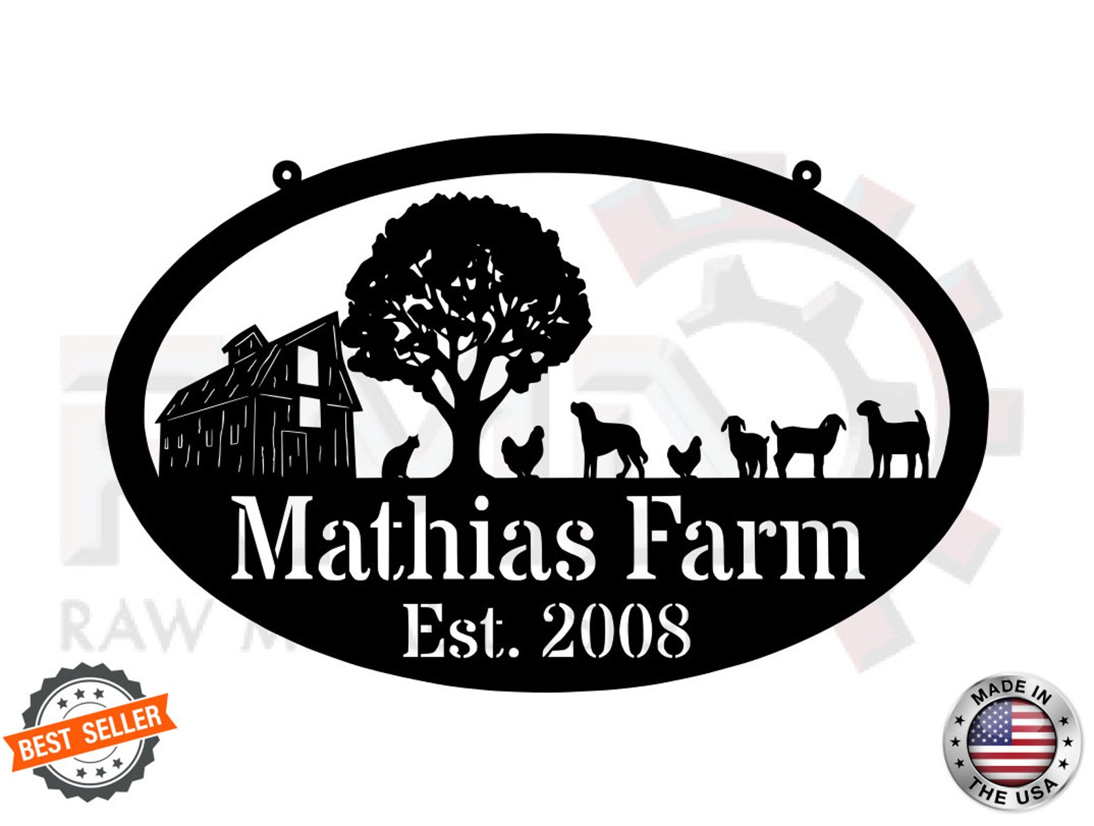 Metal FARM SIGN, Barn and Chickens, Personalized Family Name