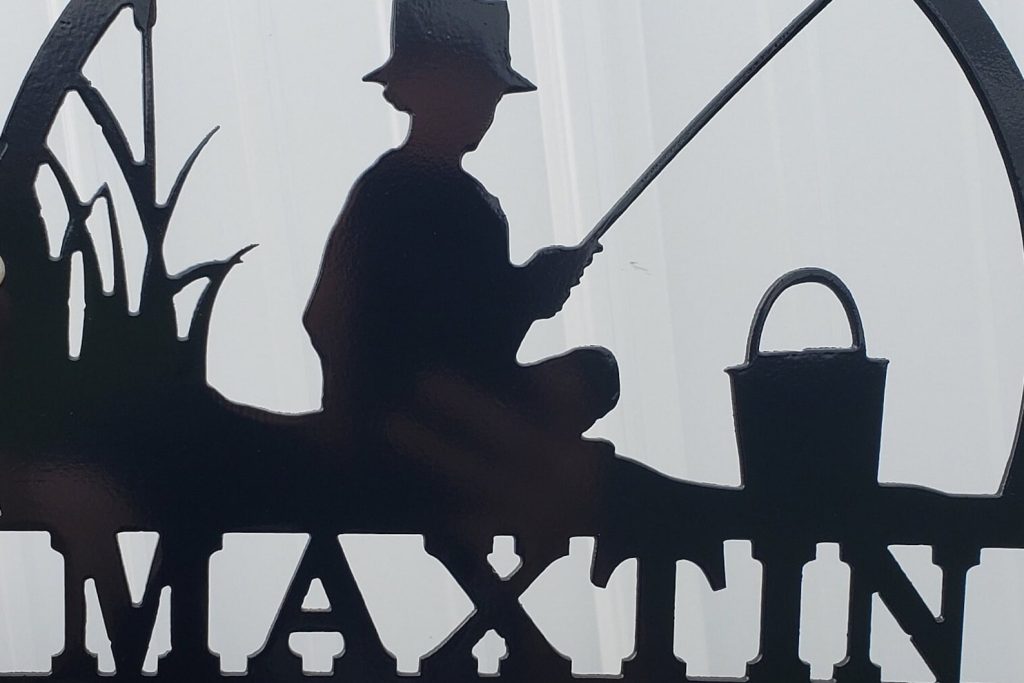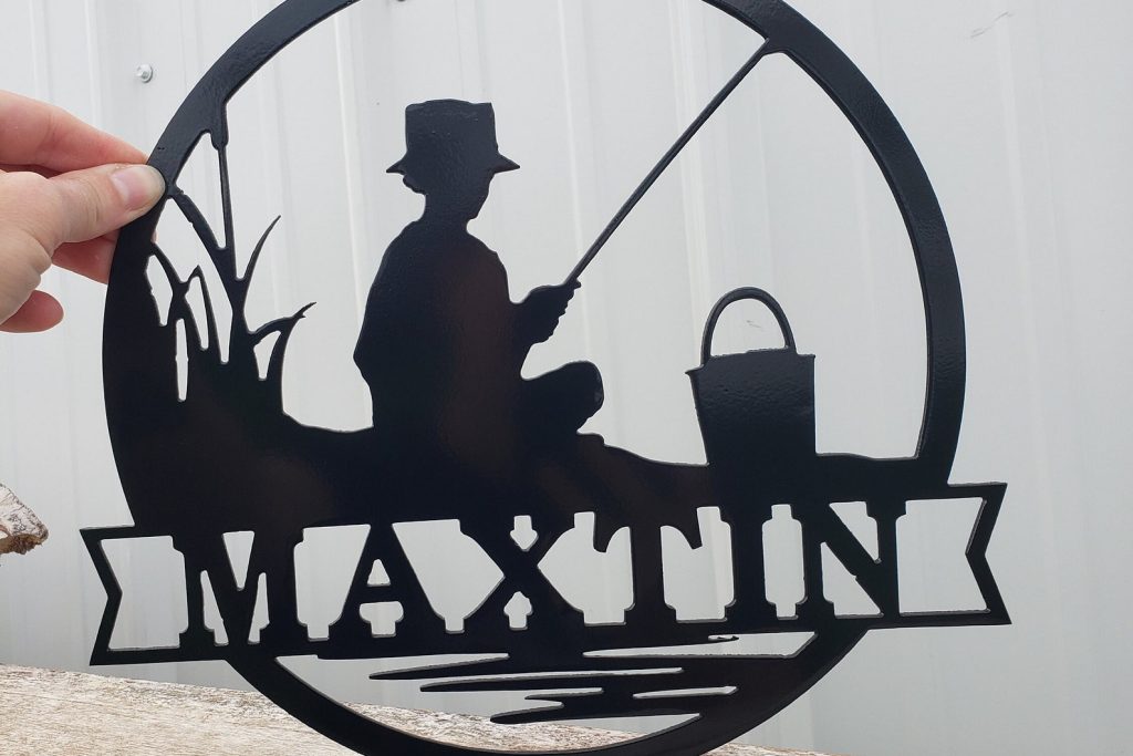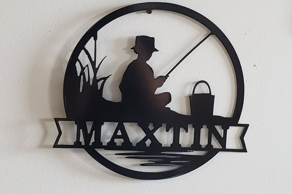This hand made metal name sign makes a great gift for fishermen. Put it up in the cabin or on your bedroom door. This fishing sign is sure to spread joy to all.